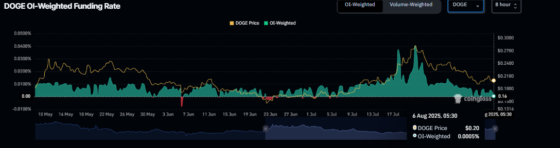 Gráfico de la tasa de financiación de DOGE. Fuente: CoinGlass