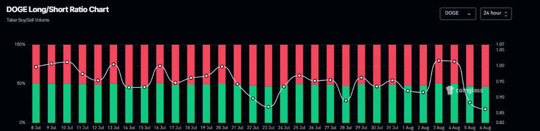 Gráfico del ratio largo-corto de DOGE. Fuente: CoinGlass