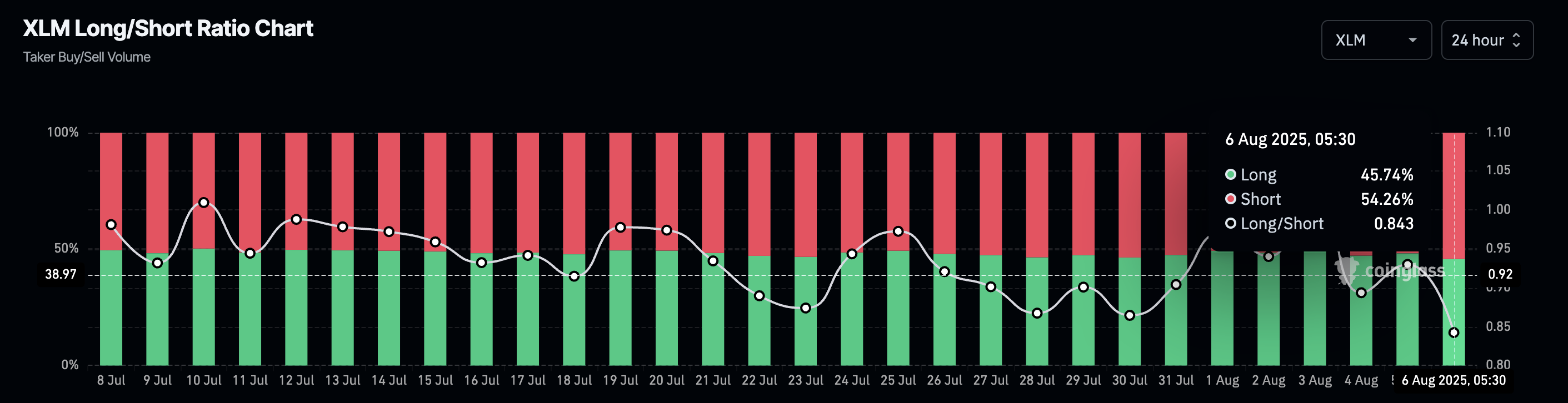 Gráfico de relación larga/corta de XLM. Fuente: Coinglass