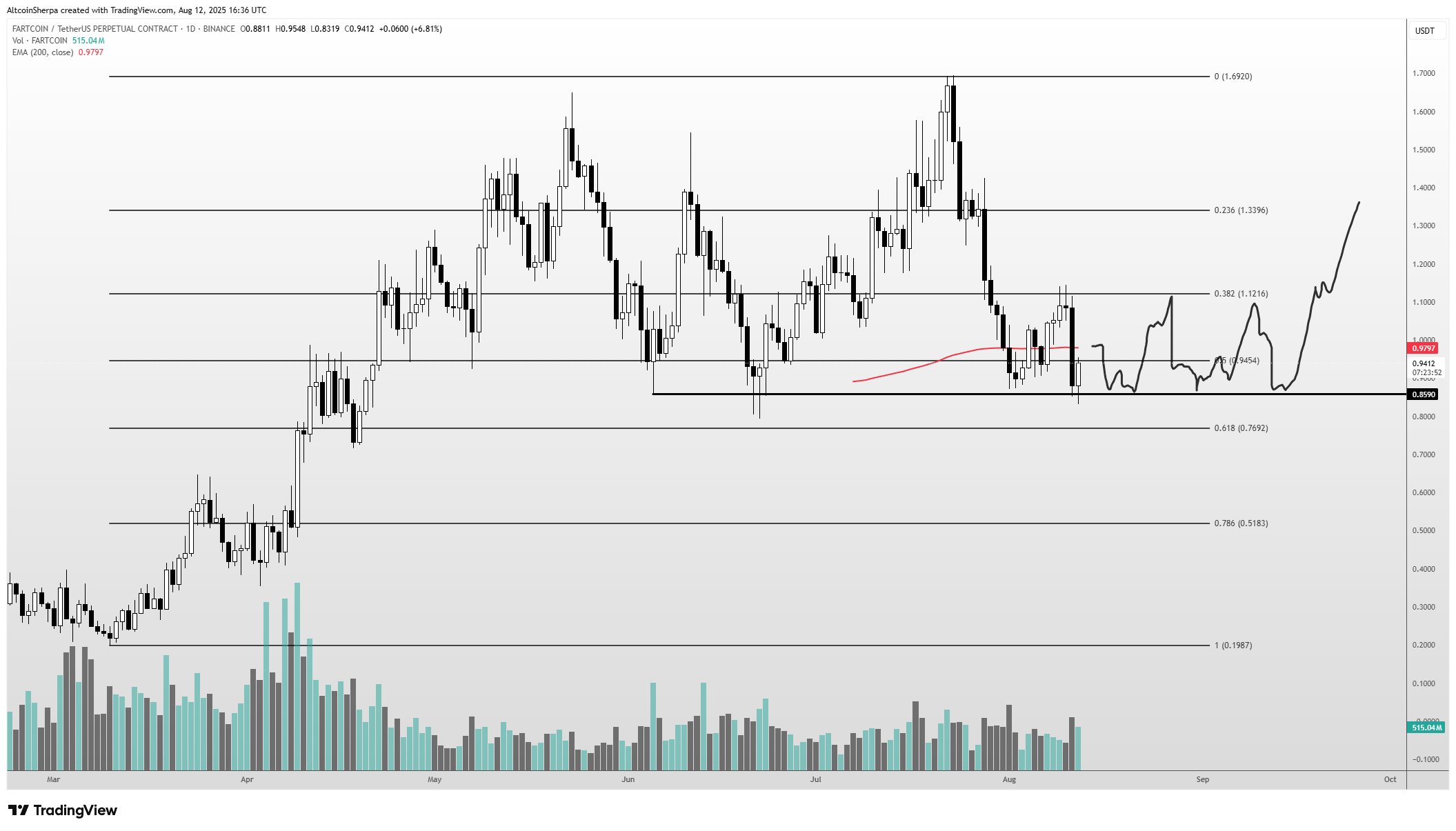 - Sherpa anticipa un repunte para Fartcoin, apuntando a niveles de $1.12 y $1.33.
