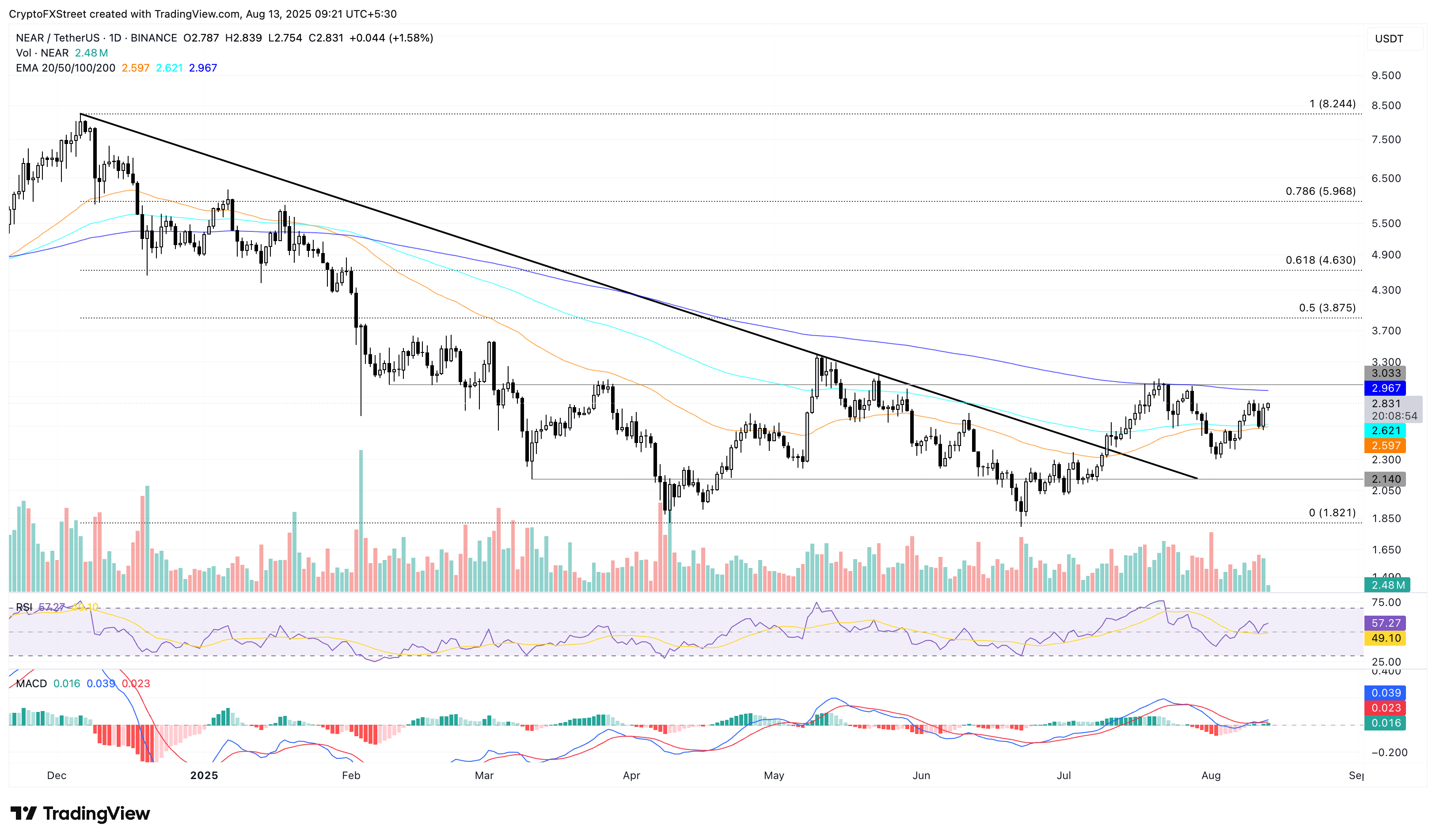 Near Protocol avanza casi un 2% en el momento de la redacción el miércoles, tras el aumento del 7% del martes, extendiendo el rebote desde la media móvil exponencial (EMA) de 50 días en 2.59 $. La recuperación en NEAR apunta a la EMA de 200 días en 2.96 $ como la resistencia inmediata.