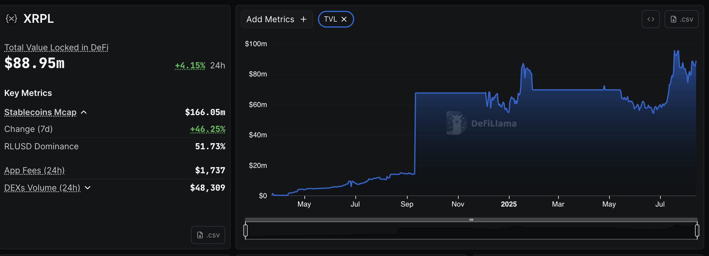 Estadísticas de XRPL DeFi | Fuente: DefiLlama