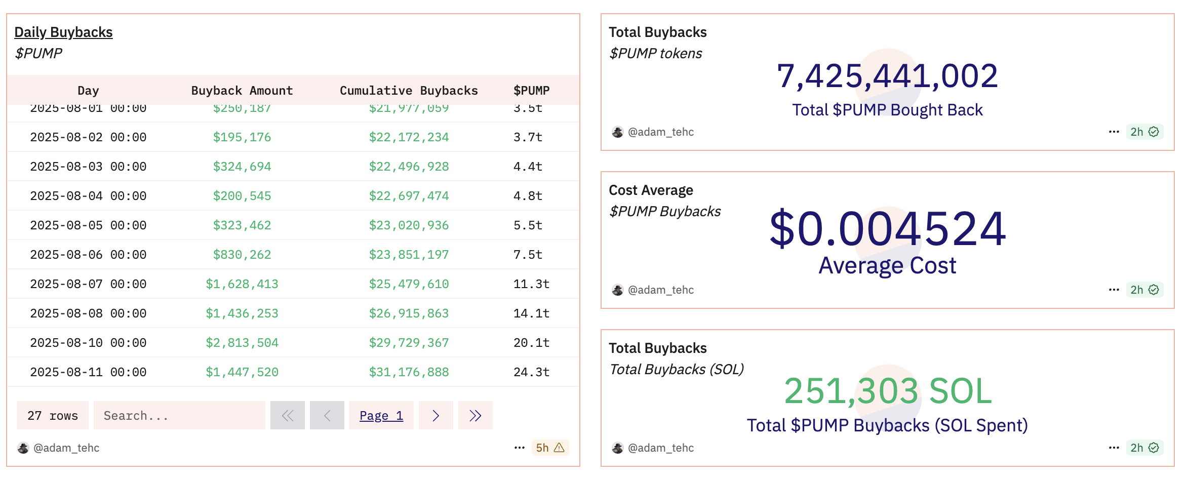 Estadísticas de recompra de PUMP | Fuente: Dune