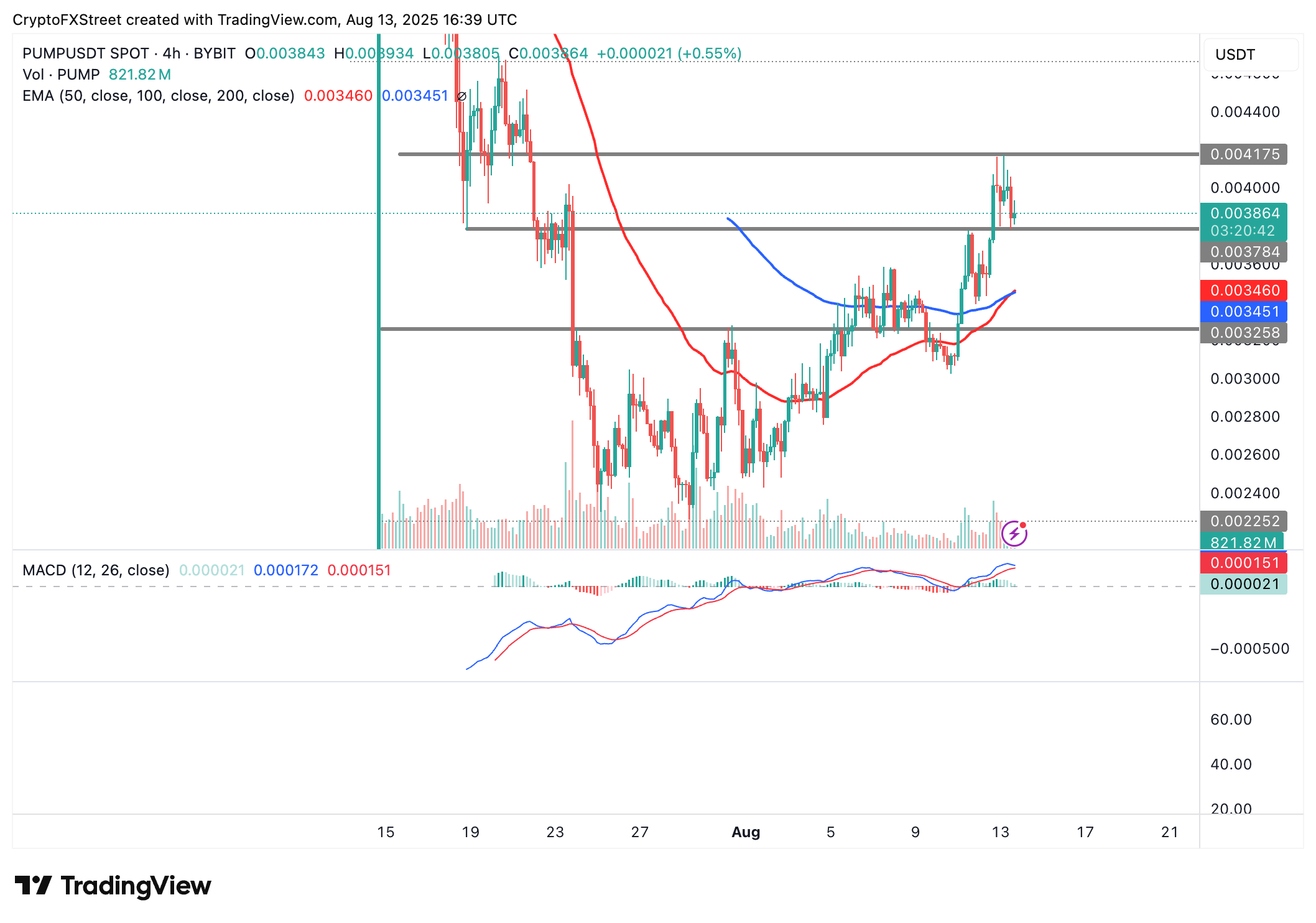 Pump.fun (PUMP) está revirtiendo parte de las ganancias en medio de un sentimiento volátil en el mercado de criptomonedas más amplio. El token nativo de la plataforma de lanzamiento de monedas meme Pump.fun se cotiza a 0.00384$, con una caída de más del 4% en el momento de escribir este artículo el miércoles.