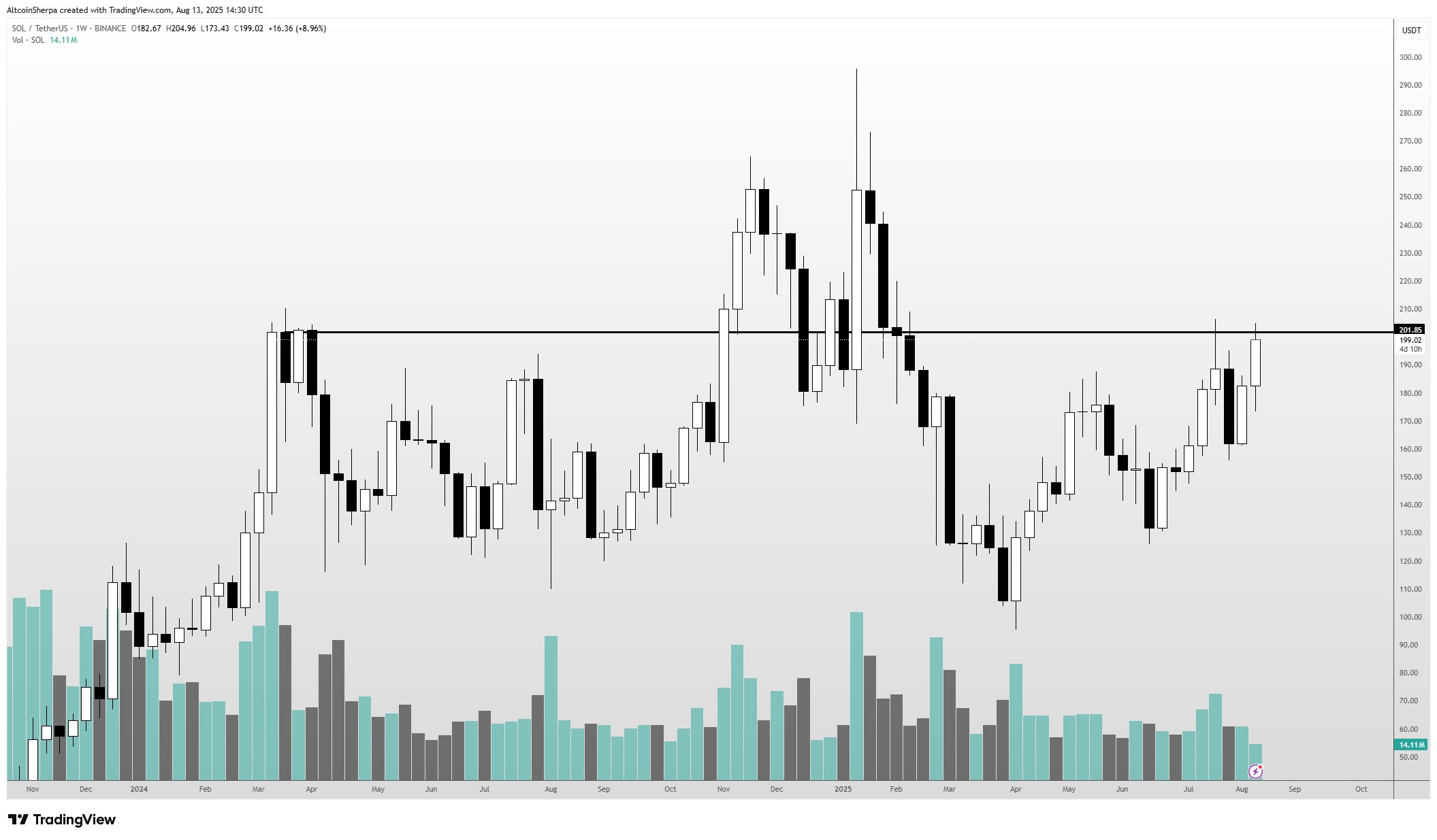 - Solana está ganando impulso, apuntando al nivel crítico de $200.