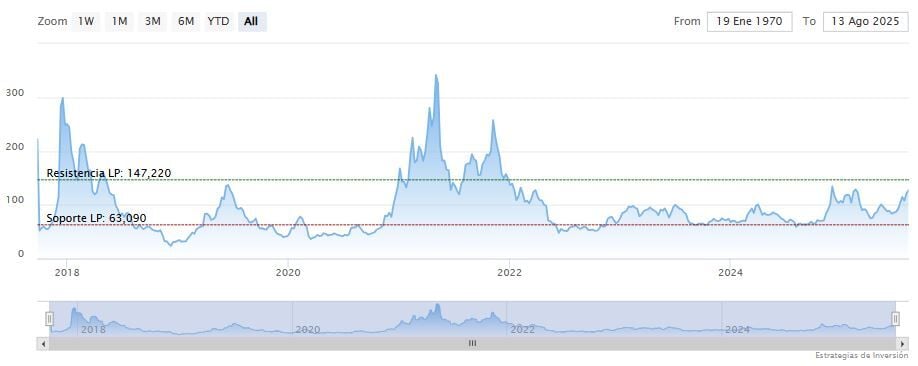 Toda la atención se centra ahora en los 137 dólares, un nivel que se alinea tanto con la resistencia técnica en el gráfico diario como con una importante bolsa de liquidez en los mercados de derivados.
