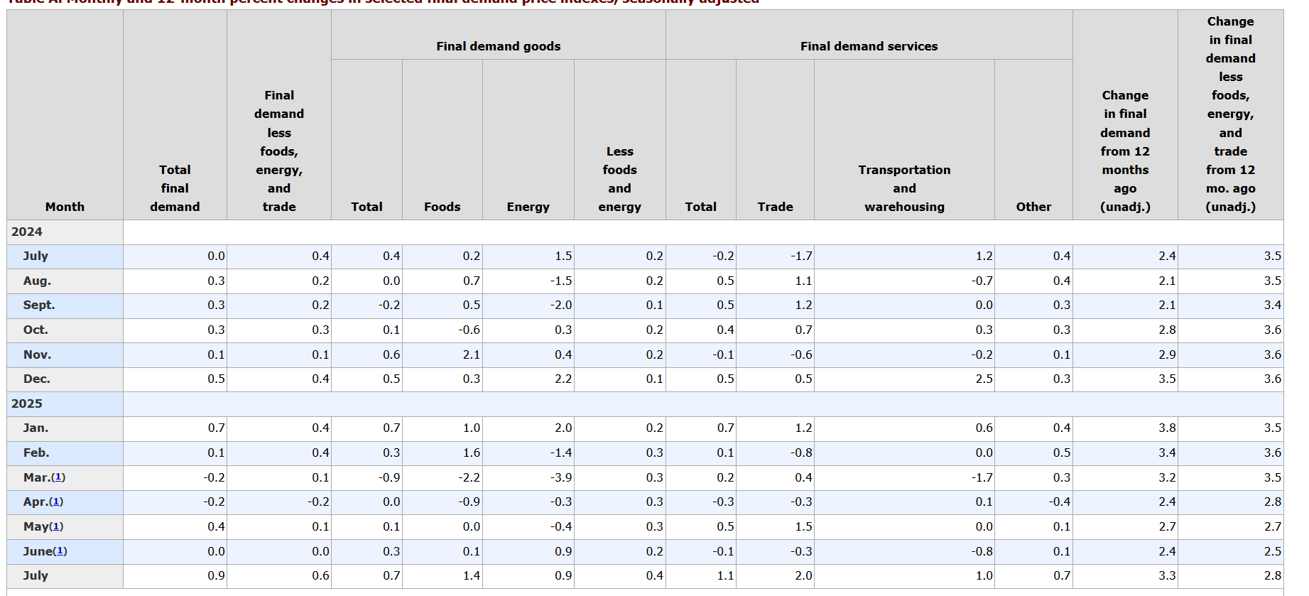En general, más de tres cuartos del aumento generalizado de julio se produjo por un aumento del 1,1% en los servicios de demanda final. Los precios de los bienes de demanda final aumentaron un 0,7%, impulsados por un aumento del 3,8% en los márgenes mayoristas de maquinaria y equipos. Estos datos revelan evidencia más clara de los impactos de los aranceles.