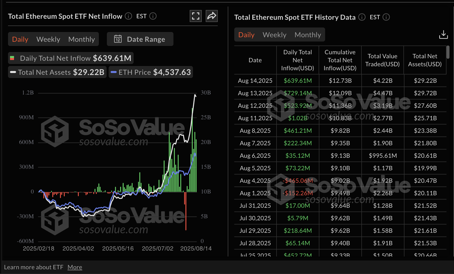 Datos de ETF de Ethereum al contado | Fuente: SoSoValue