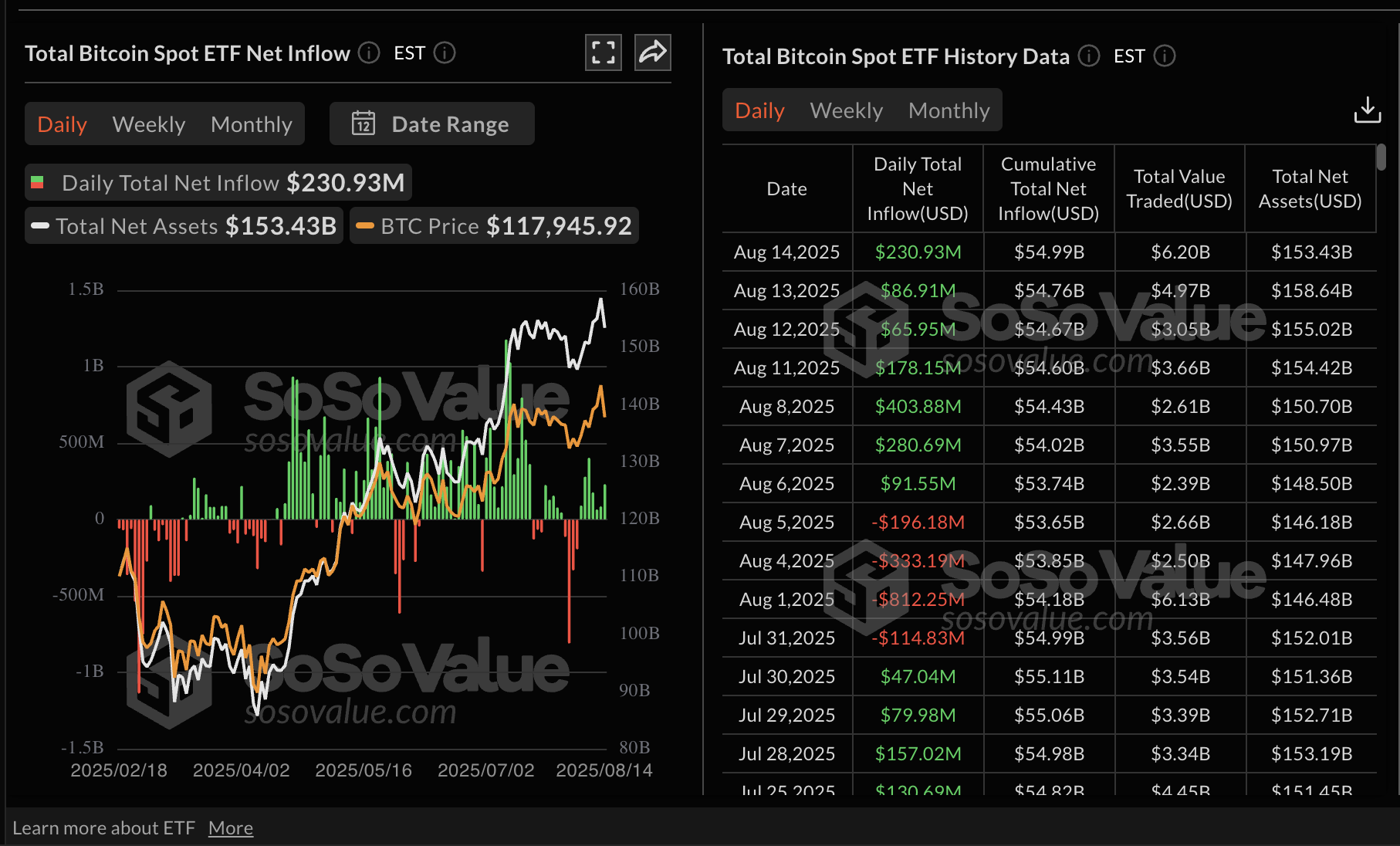 Datos de ETF de Bitcoin al contado | Fuente: SoSoValue
