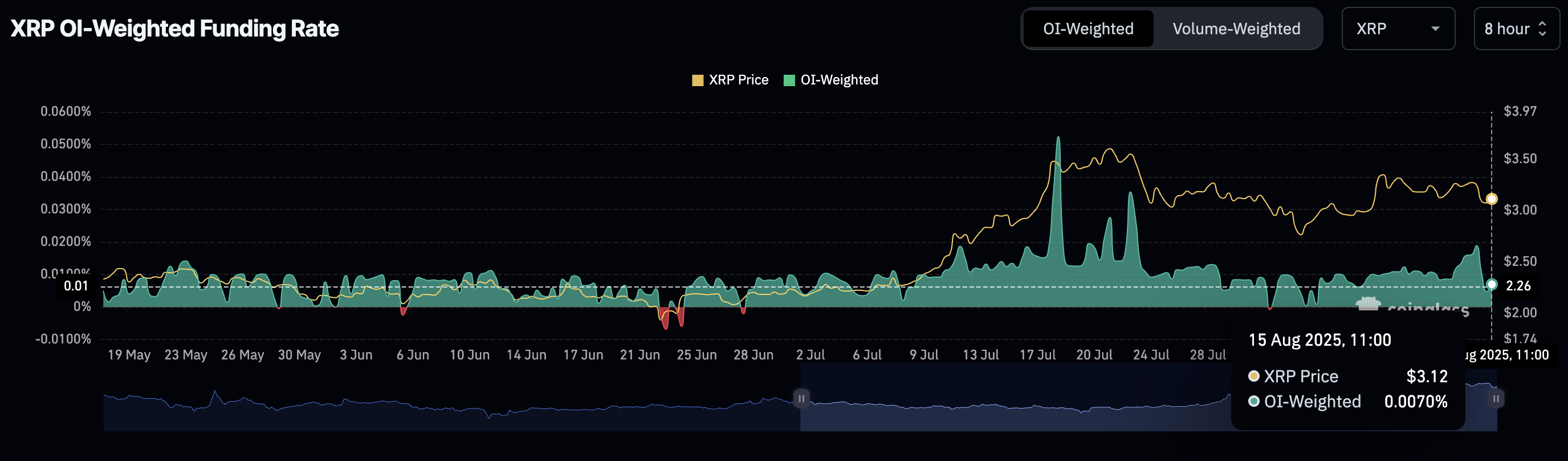 Tasa de financiación de futuros ponderada de XRP | Fuente: CoinGlass