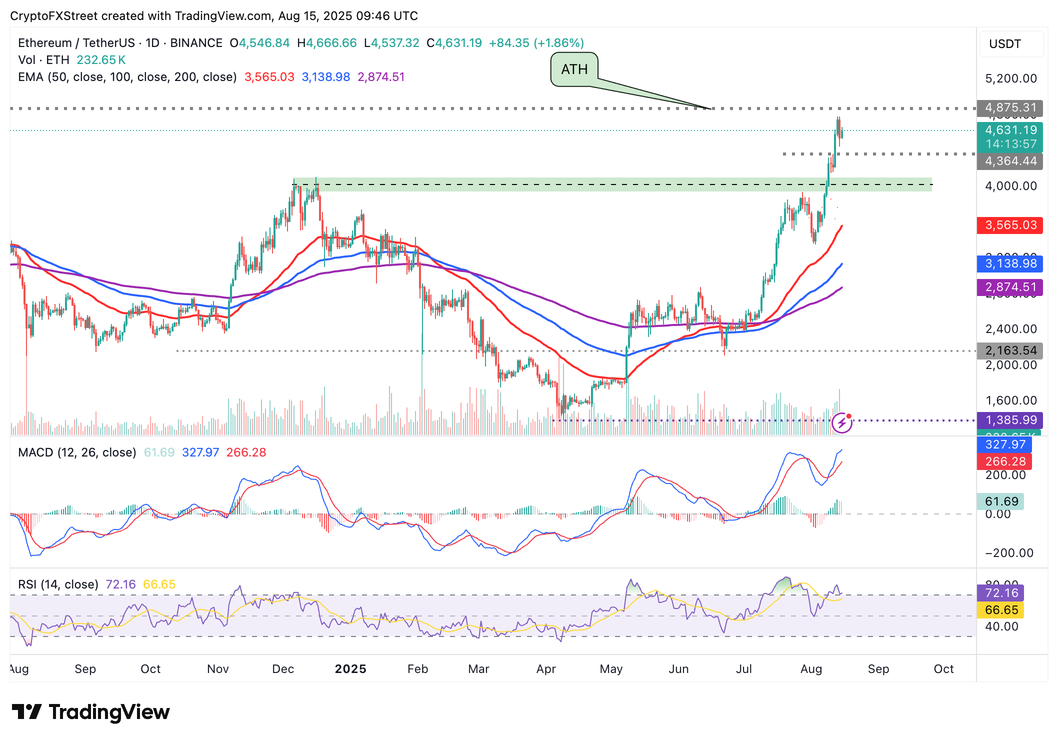 Ethereum se mantiene por encima de 4.600$ mientras los alcistas esperan una ruptura hacia su máximo histórico de alrededor de 4.878$ alcanzado en noviembre de 2021. Con el RSI manteniéndose en territorio de sobrecompra y mirando hacia arriba, el camino de menor resistencia podría seguir siendo ascendente en las próximas sesiones.