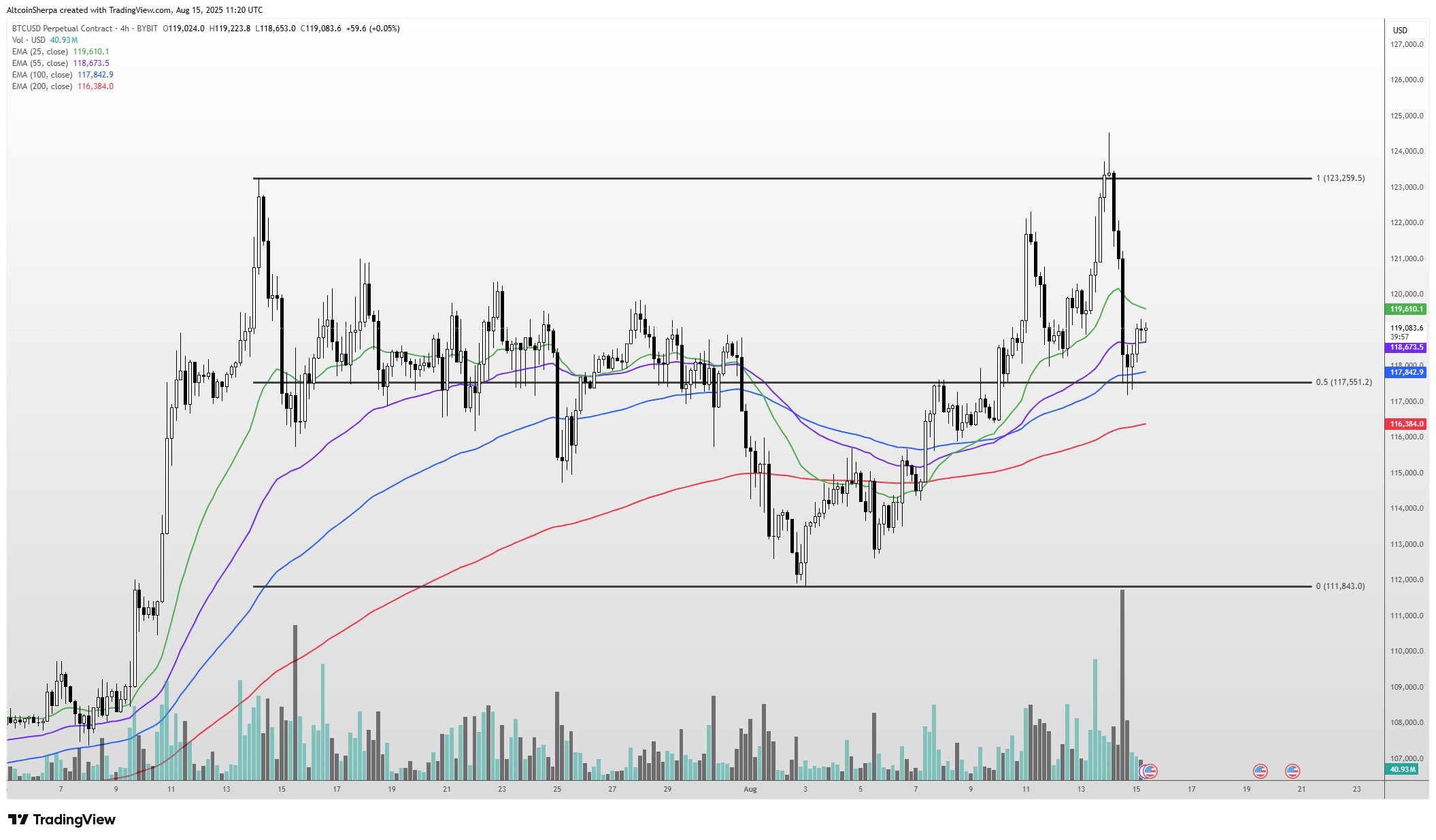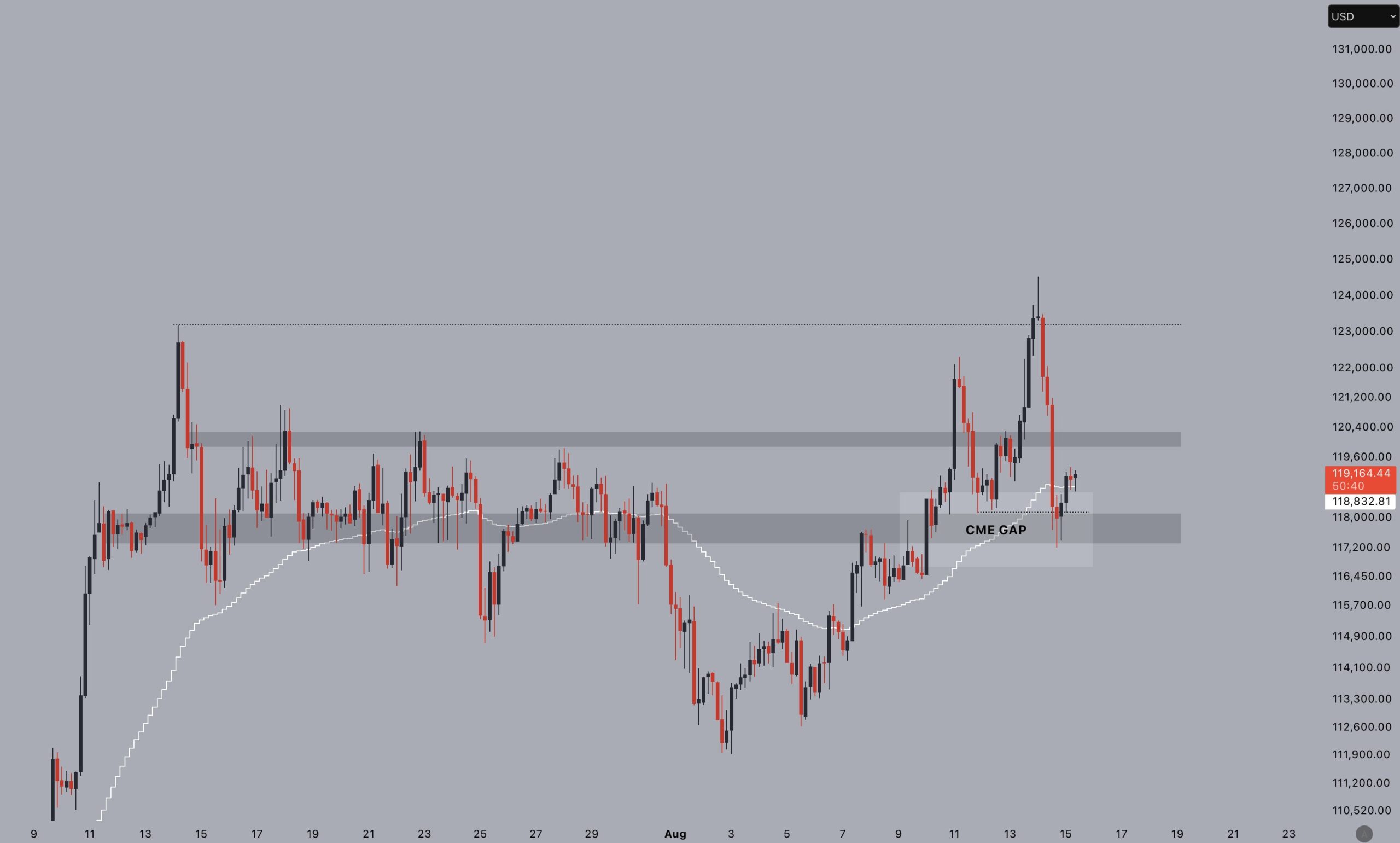 “Bitcoin se está recuperando bien después del pánico post-PPI. El precio mantuvo el nivel de soporte – el gap del CME se llenó en un 75% y el precio ahora está por encima del 50EMA en 4 horas. $120,000 sigue siendo la zona para convertir en un nivel de soporte. Si esto sucede, el descubrimiento de precios será el próximo paso.”