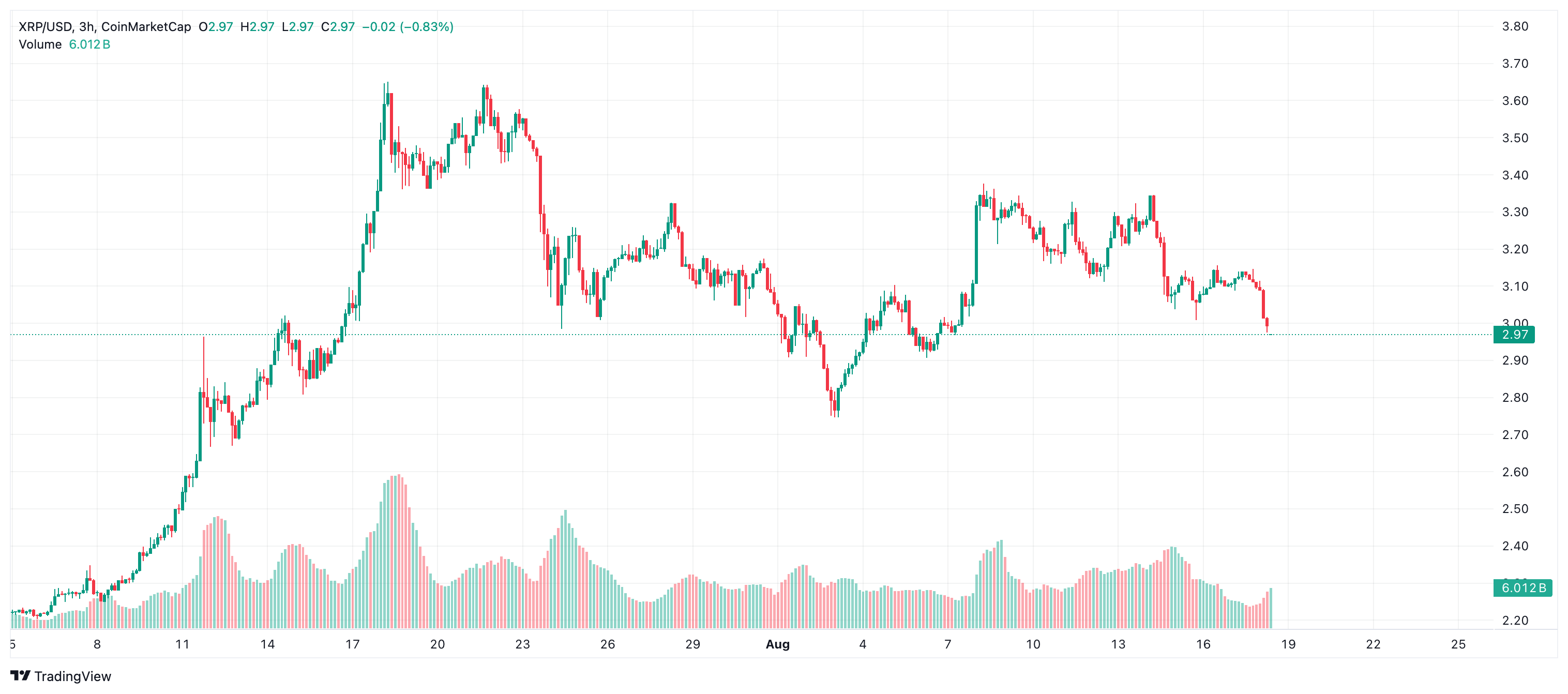 Según CoinMarketCap, XRP se cotiza a $2.98 en el momento del informe. Los influencers del mercado y los datos de intercambio reflejan que el retroceso está siendo fundamentalmente impulsado por una presión de venta generalizada y liquidaciones.