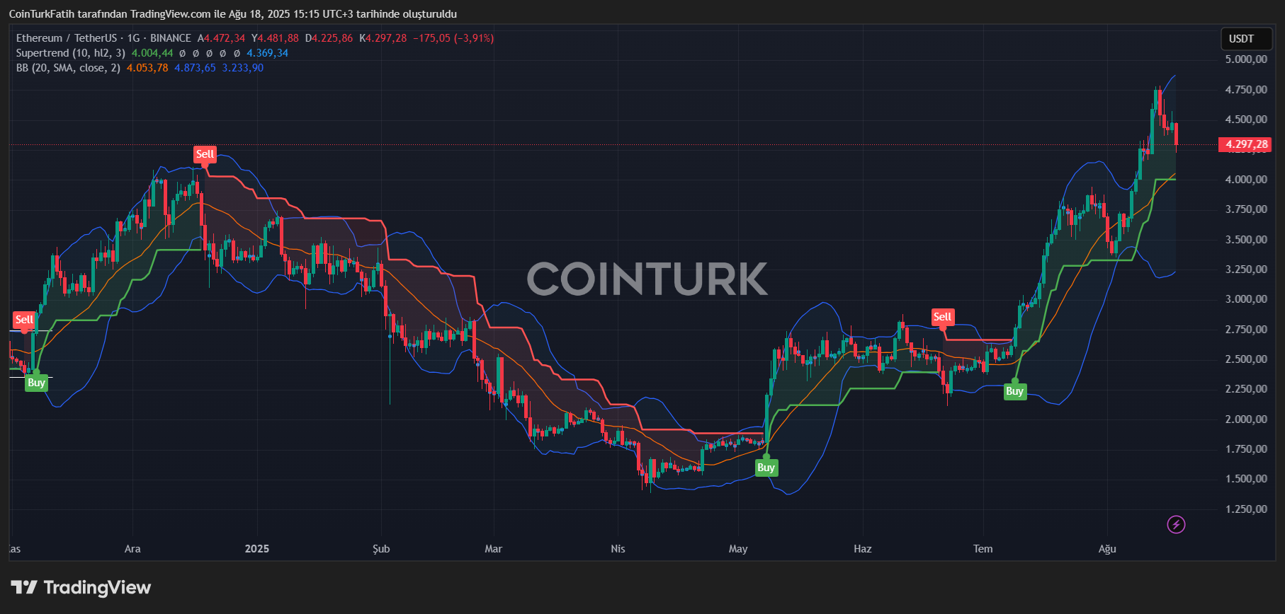 Eth continuó su día con una pérdida del 5% y se redujo a $4,275, alejándose más de su zona de máximo histórico (ATH). Anteriormente, mencionamos la posibilidad de probar la marca de $4,150, y mientras se publicaban los datos del PPI, este escenario fue destacado. El flujo de noticias ha desencadenado constantemente resultados directos en los gráficos.