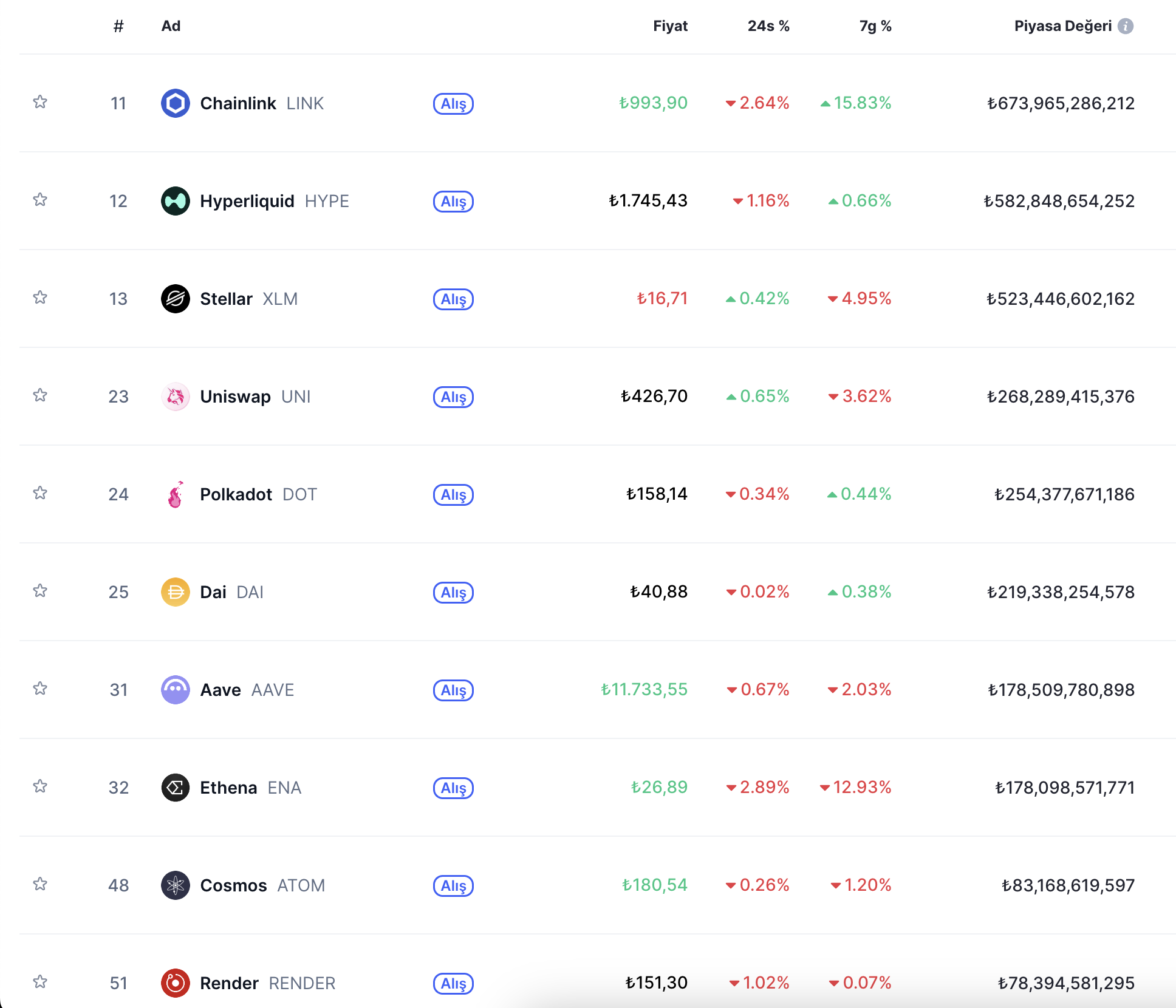 Según CoinMarketCap, las altcoins destacadas enfocadas en DeFi incluyen Chainlink (LINK), Hyperliquid (HYPE), Stellar (XLM), Uniswap (UNI) y Polkadot (DOT).