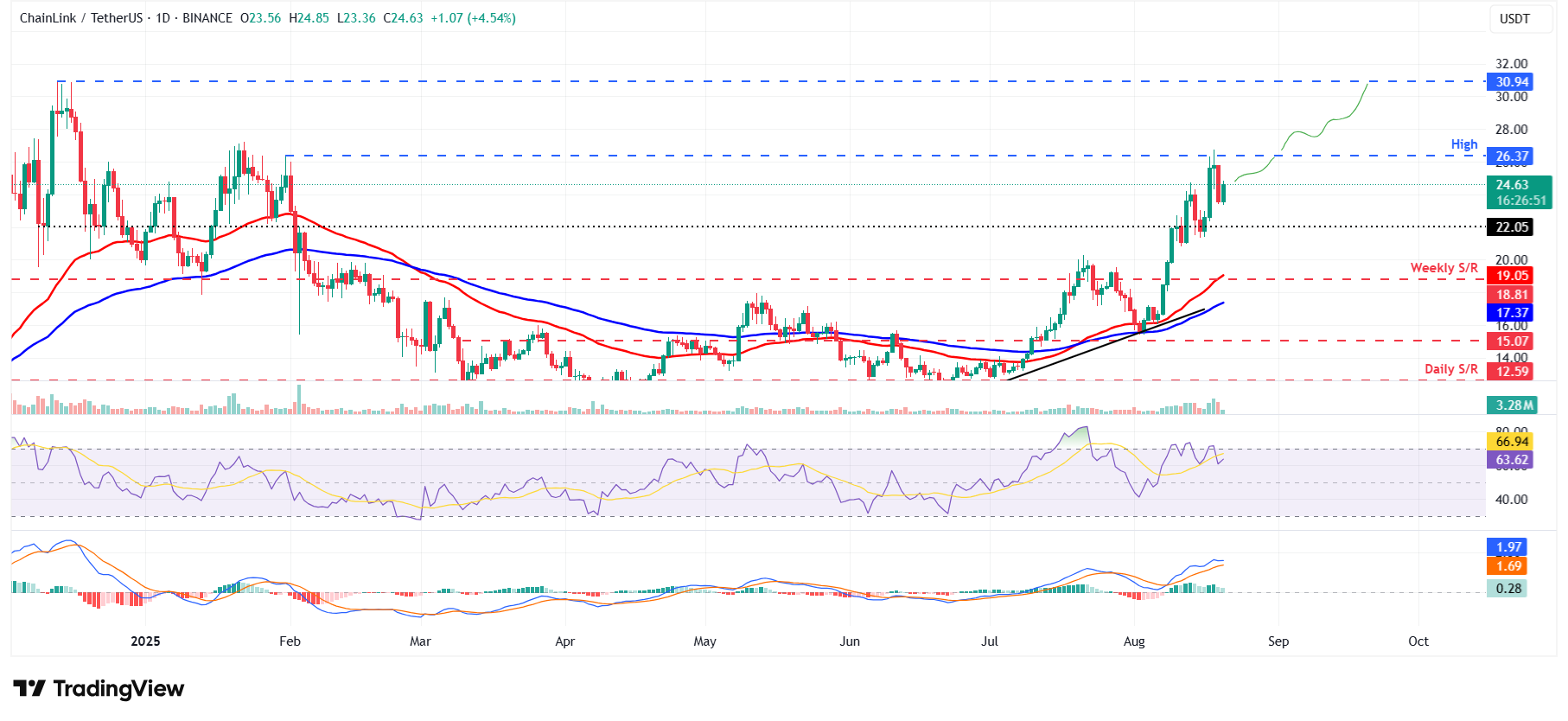 Sin embargo, si LINK enfrenta una corrección, podría extender la caída hacia su soporte diario en 22.05$.