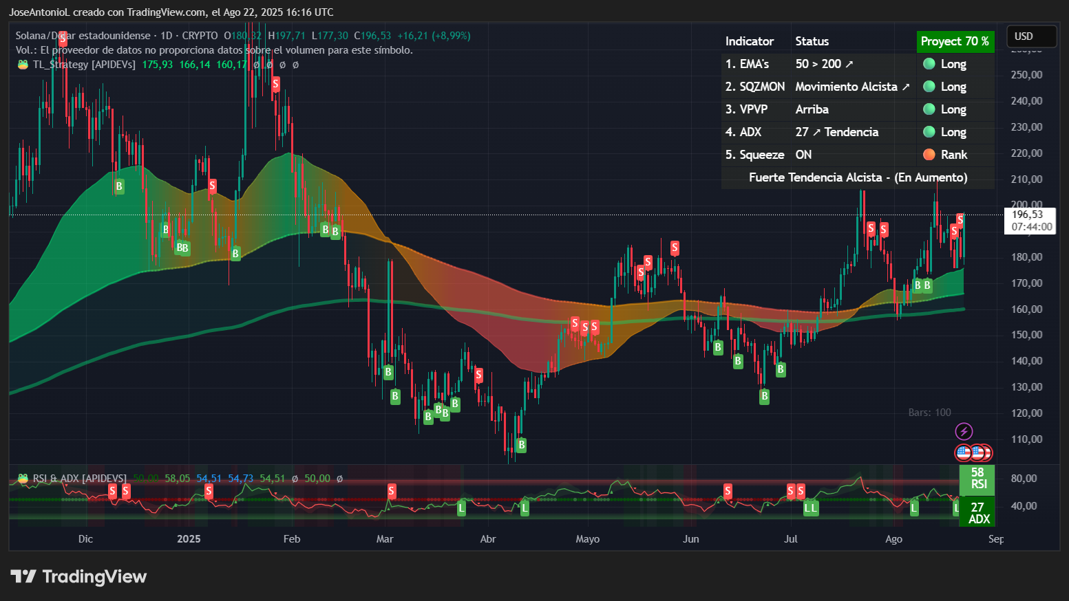El RSI de SOL en 58 se encuentra en lo que los traders llaman el "punto dulce" - lo suficientemente fuerte para mostrar un interés genuino de compra, pero muy por debajo del nivel 70 donde típicamente aparece la toma de beneficios. Esta posición permite otro 20-30% al alza antes de alcanzar condiciones históricamente sobrecompradas donde a menudo ocurren correcciones.