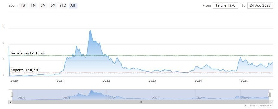 La resistencia a mediano plazo se encuentra en los 1.01 dolares. Mientras, los indicadores de Ei se muestran mixtos.