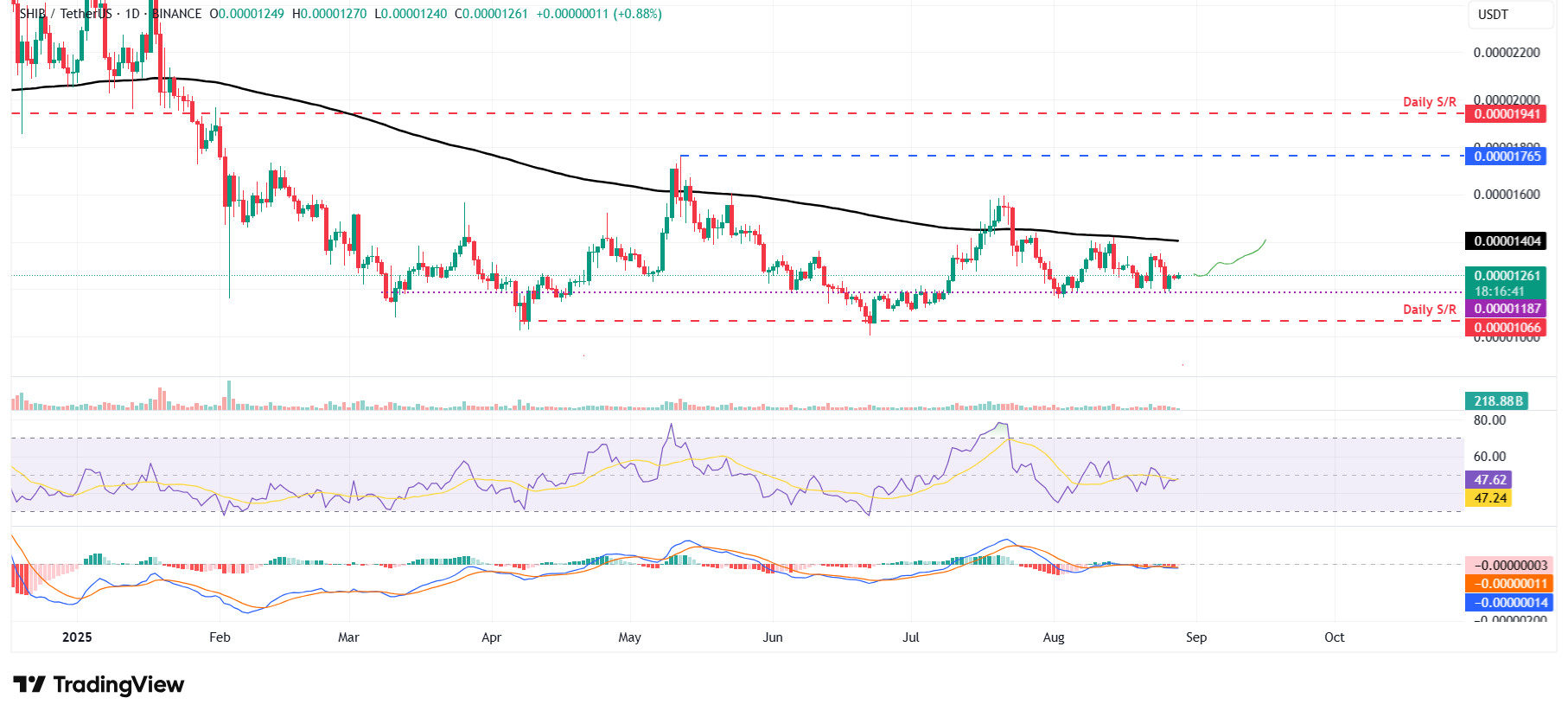 Por otro lado, si SHIB enfrenta una corrección, podría extender la caída hacia su soporte diario en 0.000011$.