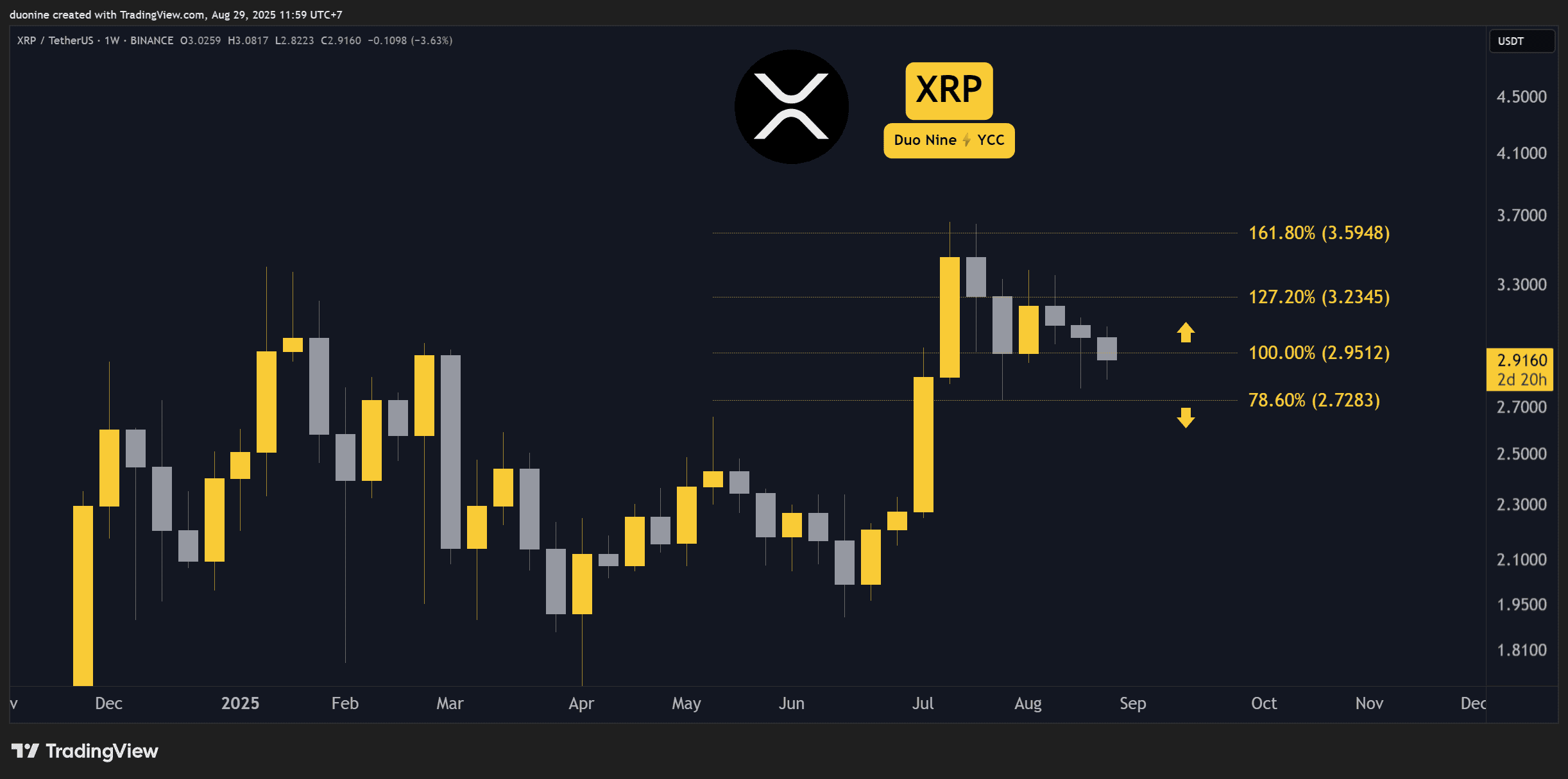 La acción de precio actual ha formado un triángulo descendente con base en torno a $2,8. Si los vendedores logran romper este nivel clave, XRP caerá más abajo en busca de nuevo soporte, siendo $2,5 el candidato más fuerte.