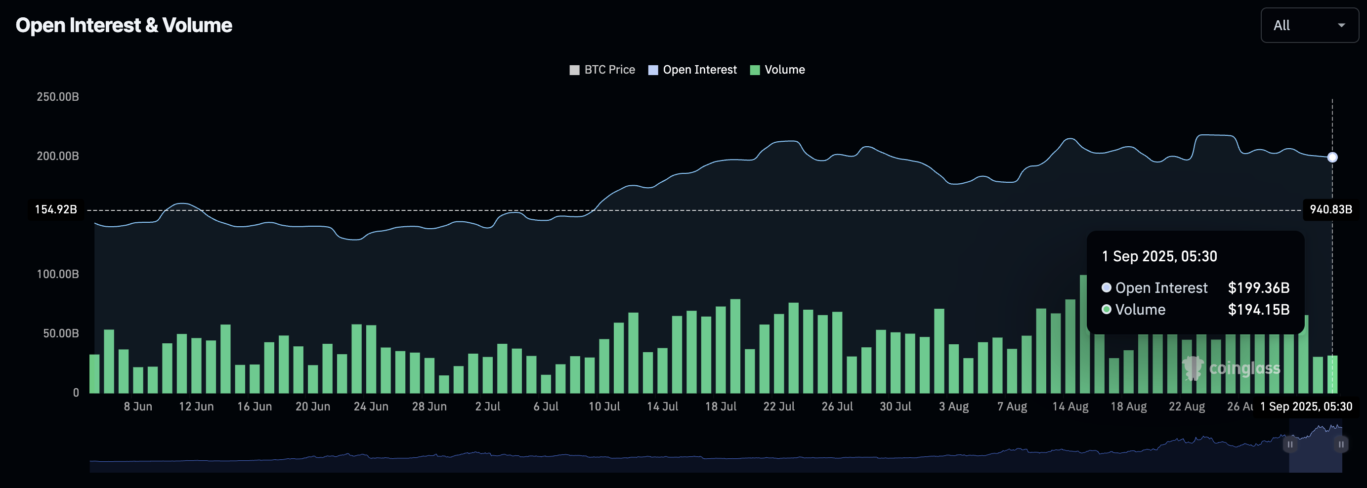 Aún así, los riesgos están sesgados para las monedas emergentes a medida que el interés en el mercado de criptomonedas más amplio disminuye. El Interés Abierto (OI) cae a 199.36 mil millones de dólares, desde 200.34 mil millones de dólares el domingo, sugiriendo una tendencia de salida de capital.
