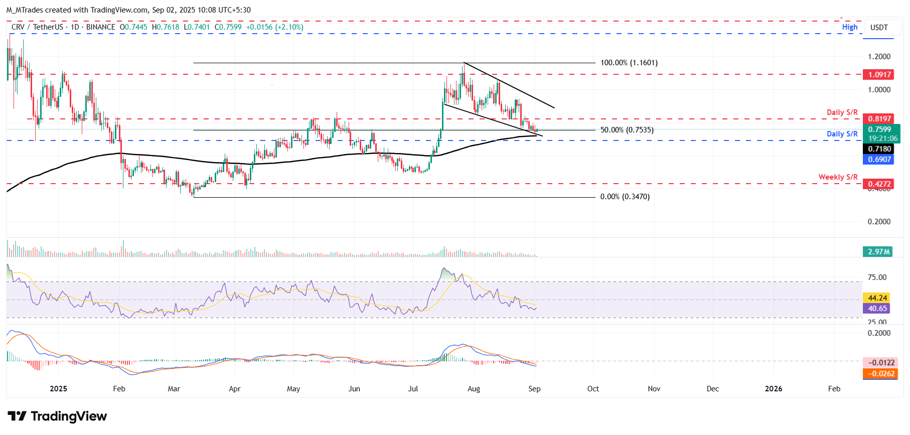 Gráfico diario de CRV/USDT