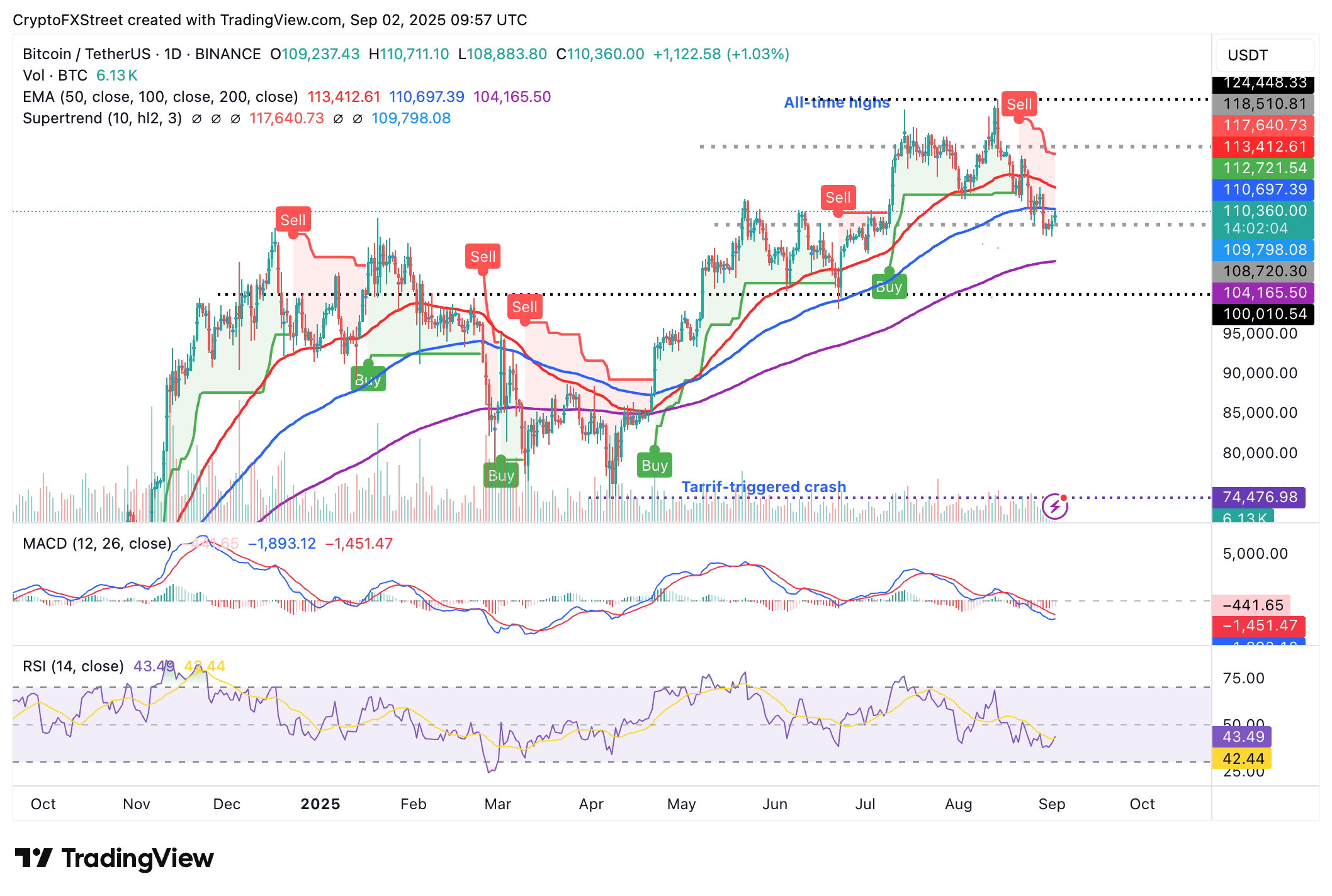 El Bitcoin se mantiene por encima de los 110.000$ en el momento de escribir este artículo el martes, mientras los toros centran su atención en superar la media móvil exponencial (EMA) de 100 días en 110.697$. El camino de menor resistencia se está desplazando gradualmente hacia arriba, respaldado por el optimismo por lo que podría ser el primer recorte de tasas de la Fed este año. Una señal de compra del indicador de Convergencia/Divergencia de la Media Móvil (MACD) respalda una perspectiva alcista. Si los operadores aumentan su exposición anticipando un rebote constante en el precio del Bitcoin, una reversión hacia la resistencia en 118.510$, que fue probada por última vez el 10 de agosto, ganaría impulso.