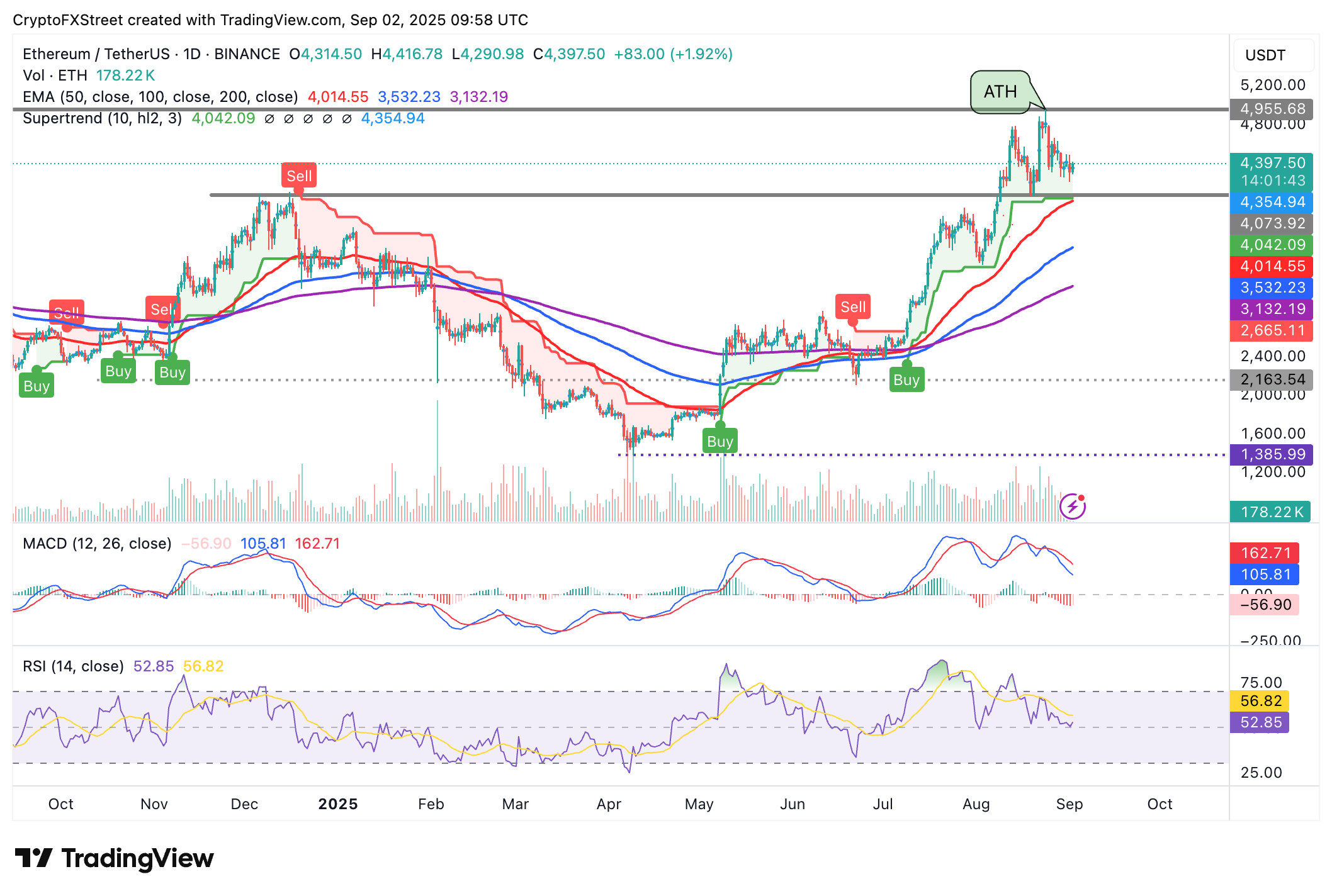 La posición del precio de Ethereum por encima de la EMA de 50 días en 4.014$, la EMA de 100 días en 3.532$ y la EMA de 200 días en 3.132$ apoya el sentimiento alcista del mercado.