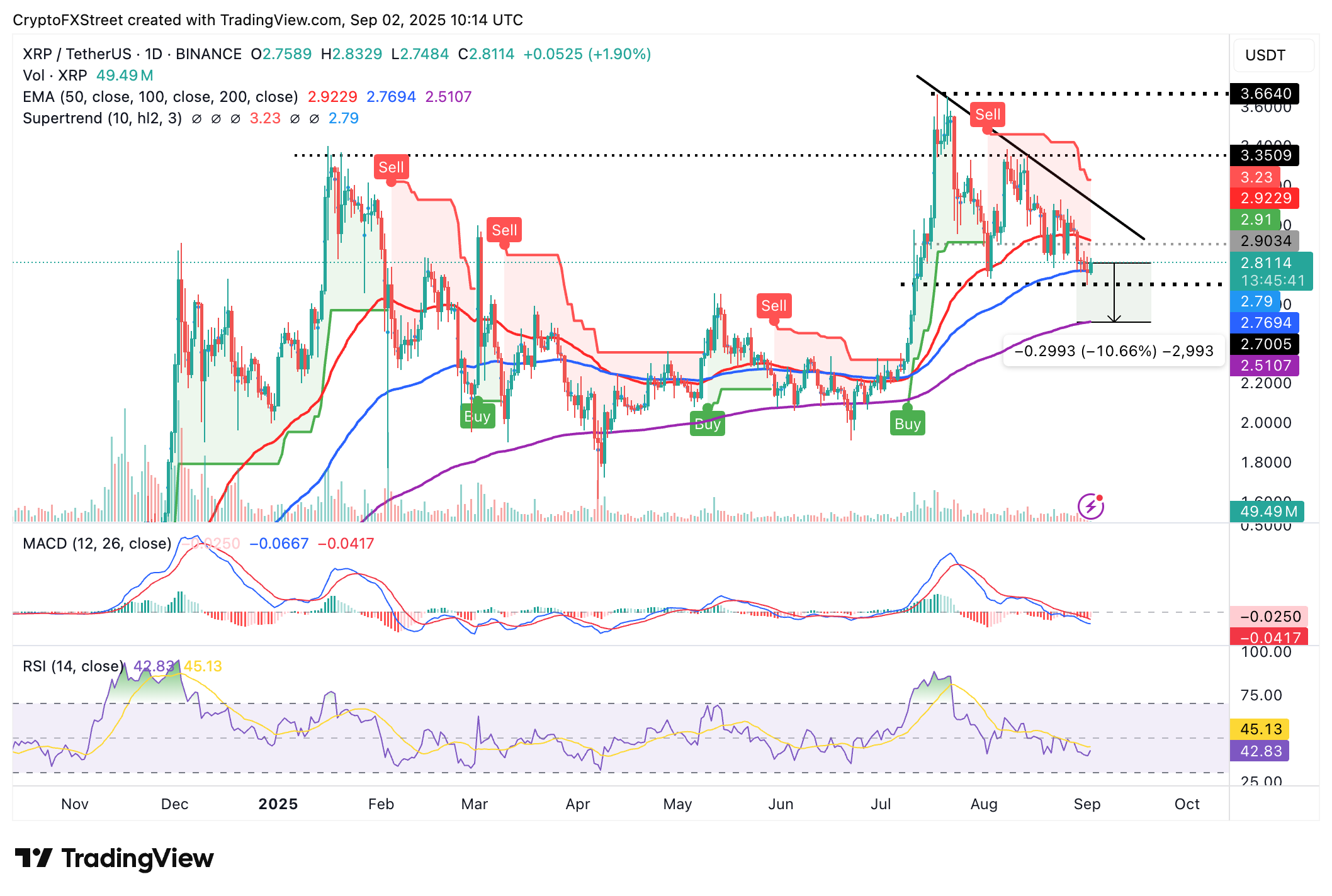 Los operadores deben considerar la señal de venta del MACD, que se ha mantenido desde el 25 de julio. Si los operadores reducen su riesgo debido a sesgos bajistas a corto plazo, el precio de XRP podría reanudar su tendencia a la baja, un 11% por debajo del nivel actual, hasta el soporte de la EMA de 200 días en 2.51$.