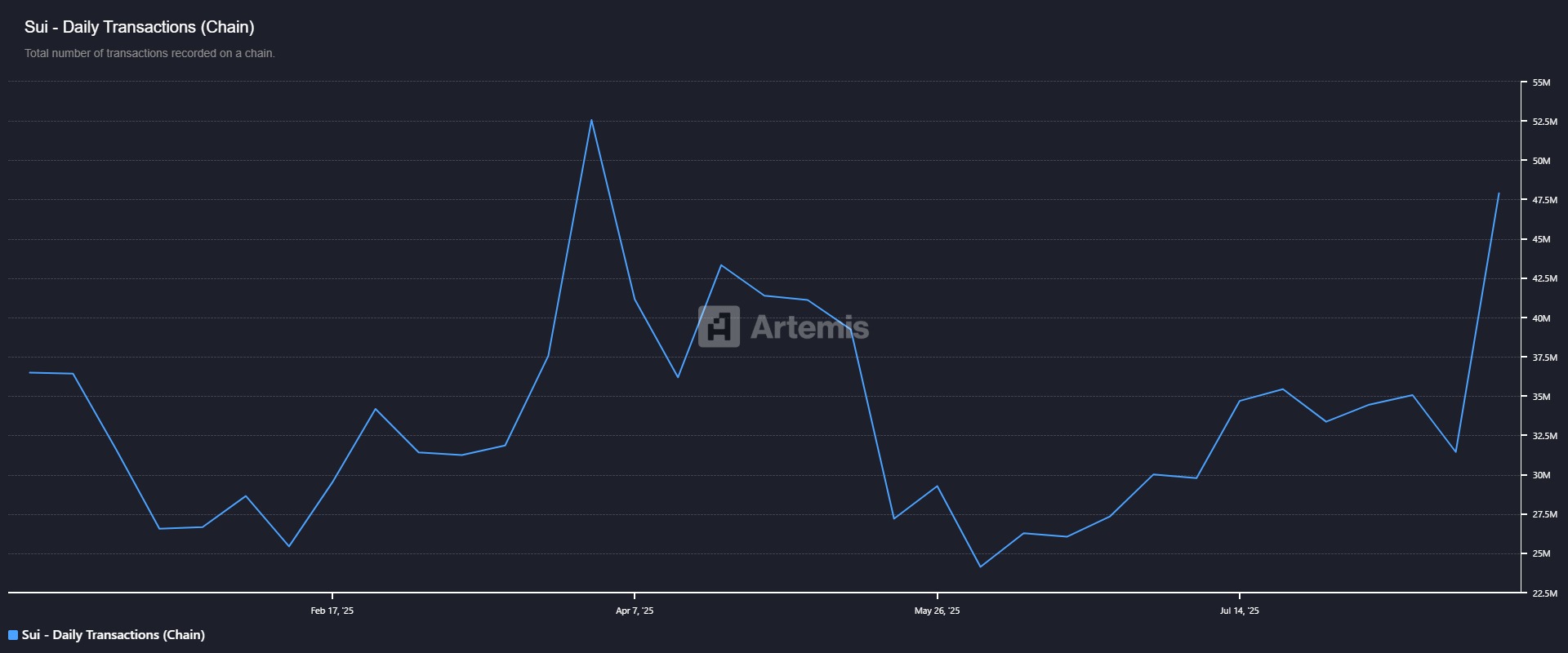Gráfico de transacciones de Sui. Fuente: Artemis Terminal