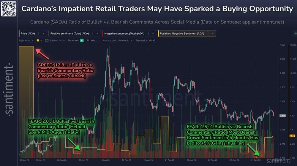 Históricamente, el sentimiento minorista bajista ha ofrecido una fase de acumulación ideal para las ballenas; en este caso, la perspectiva que podría impulsar el precio de ADA al alza.