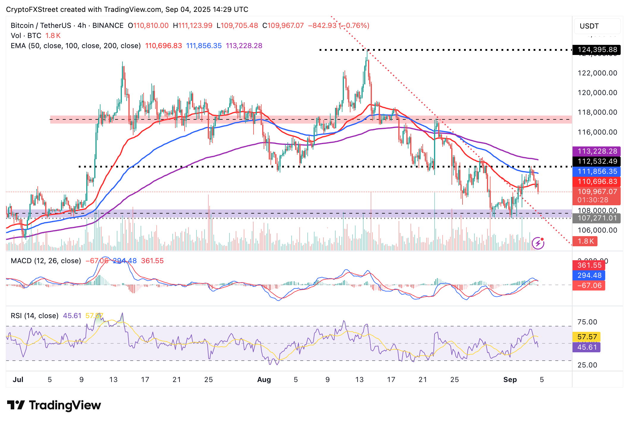 El Bitcoin se mantiene ligeramente por debajo de 110.000$, cayendo más del 1.5% el jueves. Los indicadores a corto plazo sugieren que la tendencia bajista podría extenderse hacia el nivel de soporte ligeramente por encima de 107.000$, que fue probado el lunes y martes.