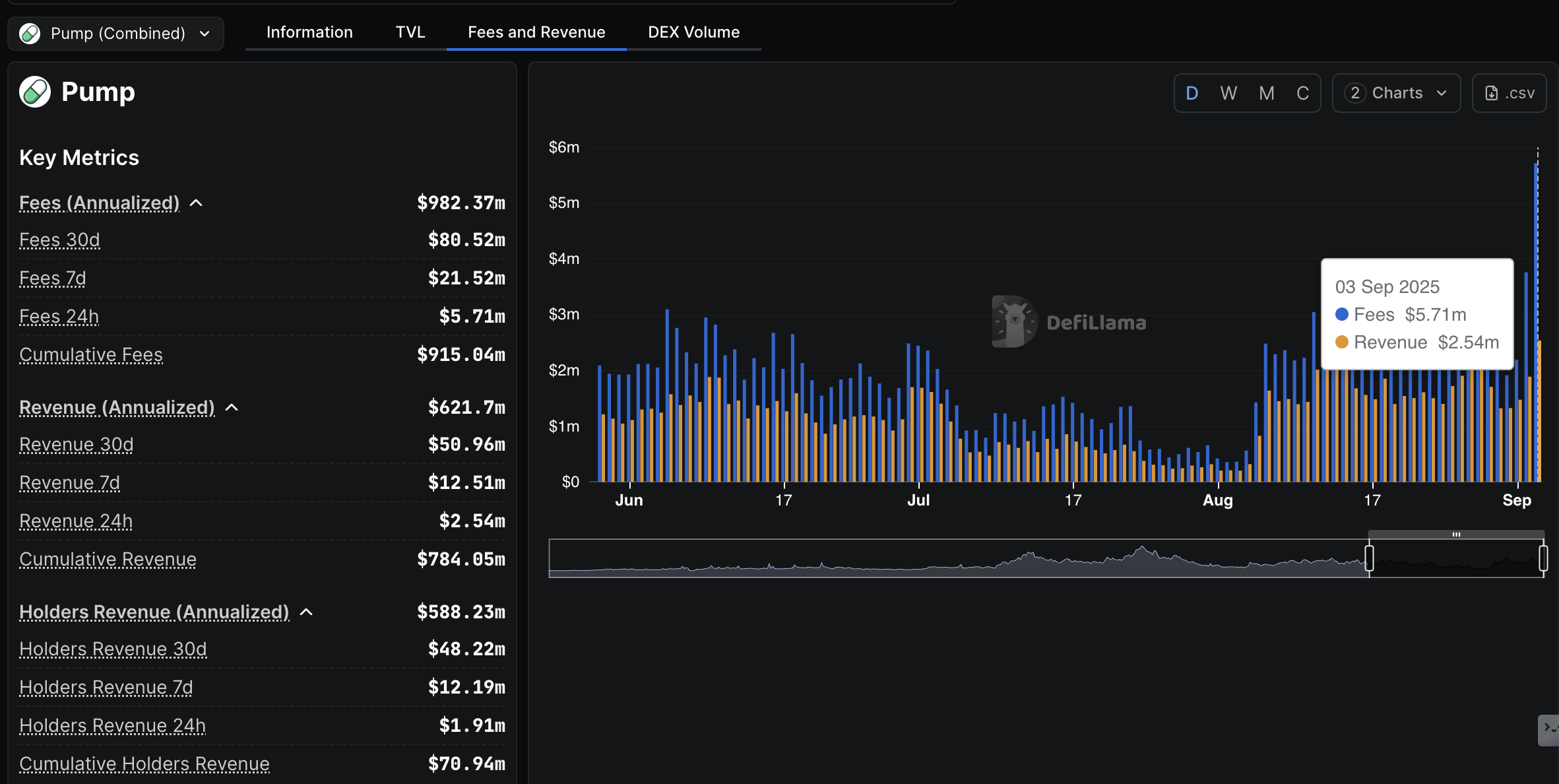 Ingresos de Pump.fun | Fuente: DefiLlama