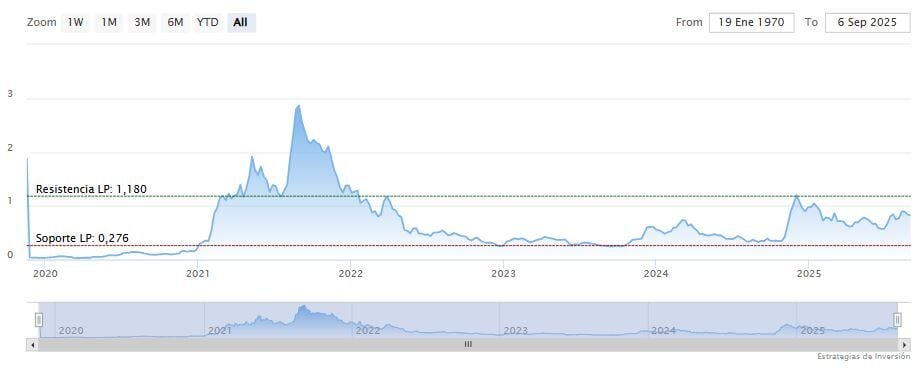 La resistencia a mediano plazo se encuentra en los 1.01 dólares. Mientras, los indicadores de Ei se muestran mixtos.