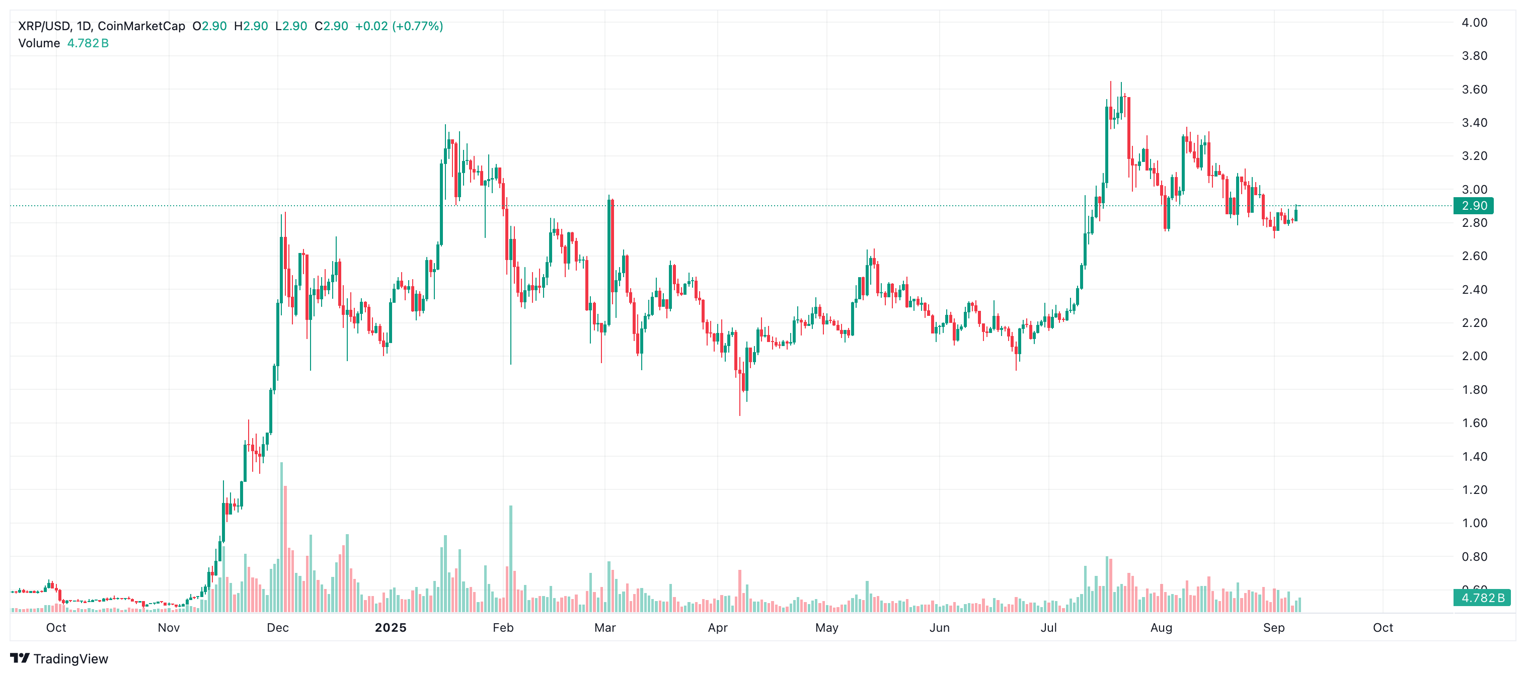 Amberdata indica que las opciones de compra de XRP se han estado negociando a un precio más alto que las opciones de venta en todos los vencimientos. Las opciones de compra de diciembre se negocian con una prima de seis puntos de volatilidad sobre las opciones de venta, reflejando expectativas de un repunte de fin de año. Actualmente, XRP se negocia a $2.88. El aplazamiento por parte de la Comisión de Bolsa y Valores de EE.UU. (SEC) de las aplicaciones de emisores importantes como WisdomTree, Franklin Templeton y 21Compartirs hasta finales de octubre se ha convertido en un factor determinante. Estas aplicaciones, que se decidirán aproximadamente al mismo tiempo, podrían influir en los precios.