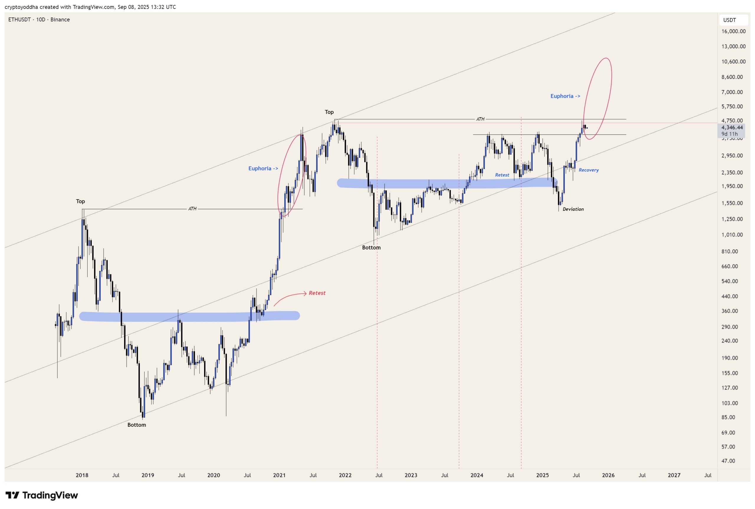 Yoddha, por otro lado, se está enfocando en Ethereum. El rey de las altcoins sigue por debajo de $4600, y el analista se burla de aquellos que esperan una baja.