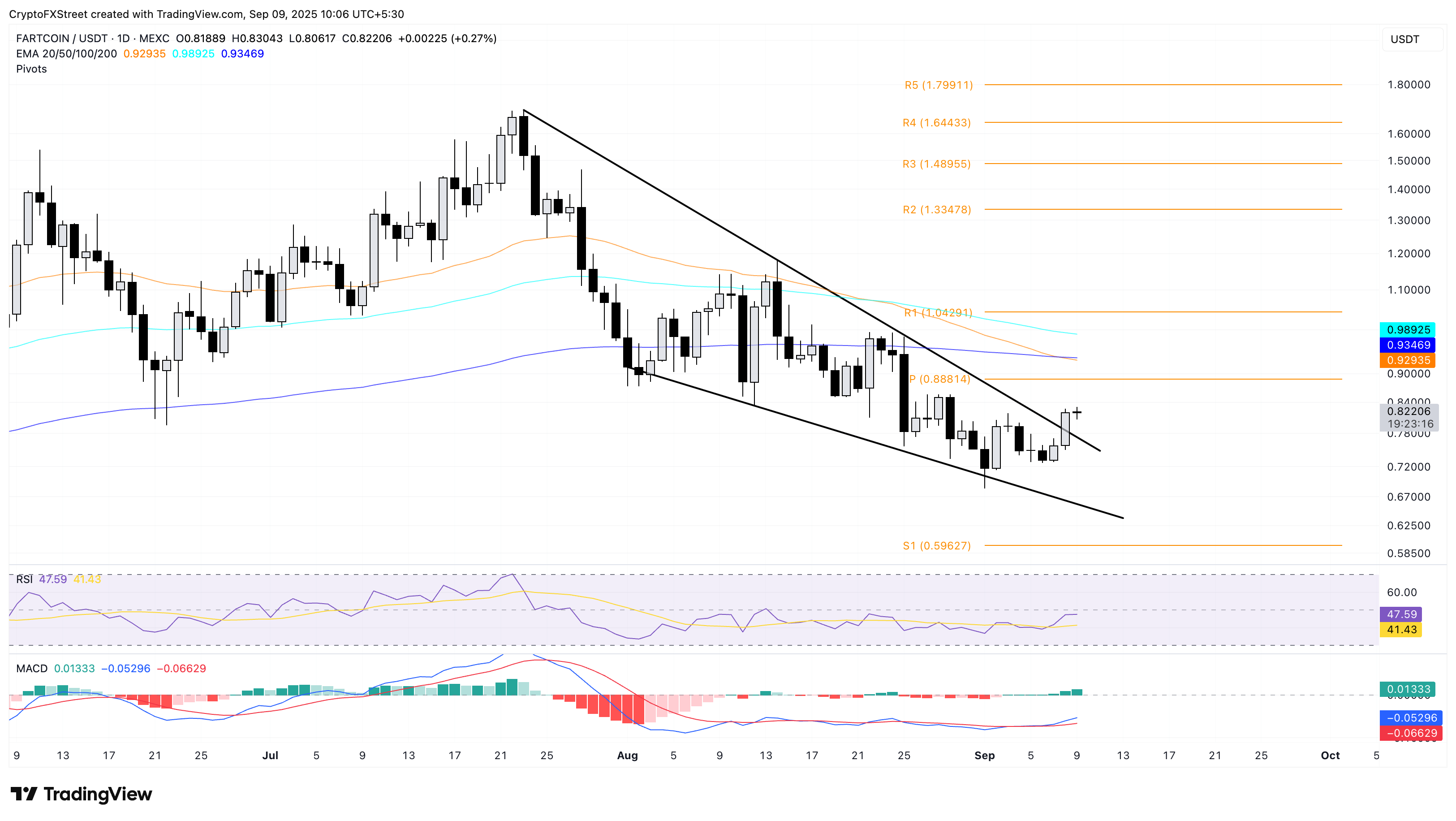 FARTCOIN apunta a 0.88$ a medida que se acumula el impulso alcista