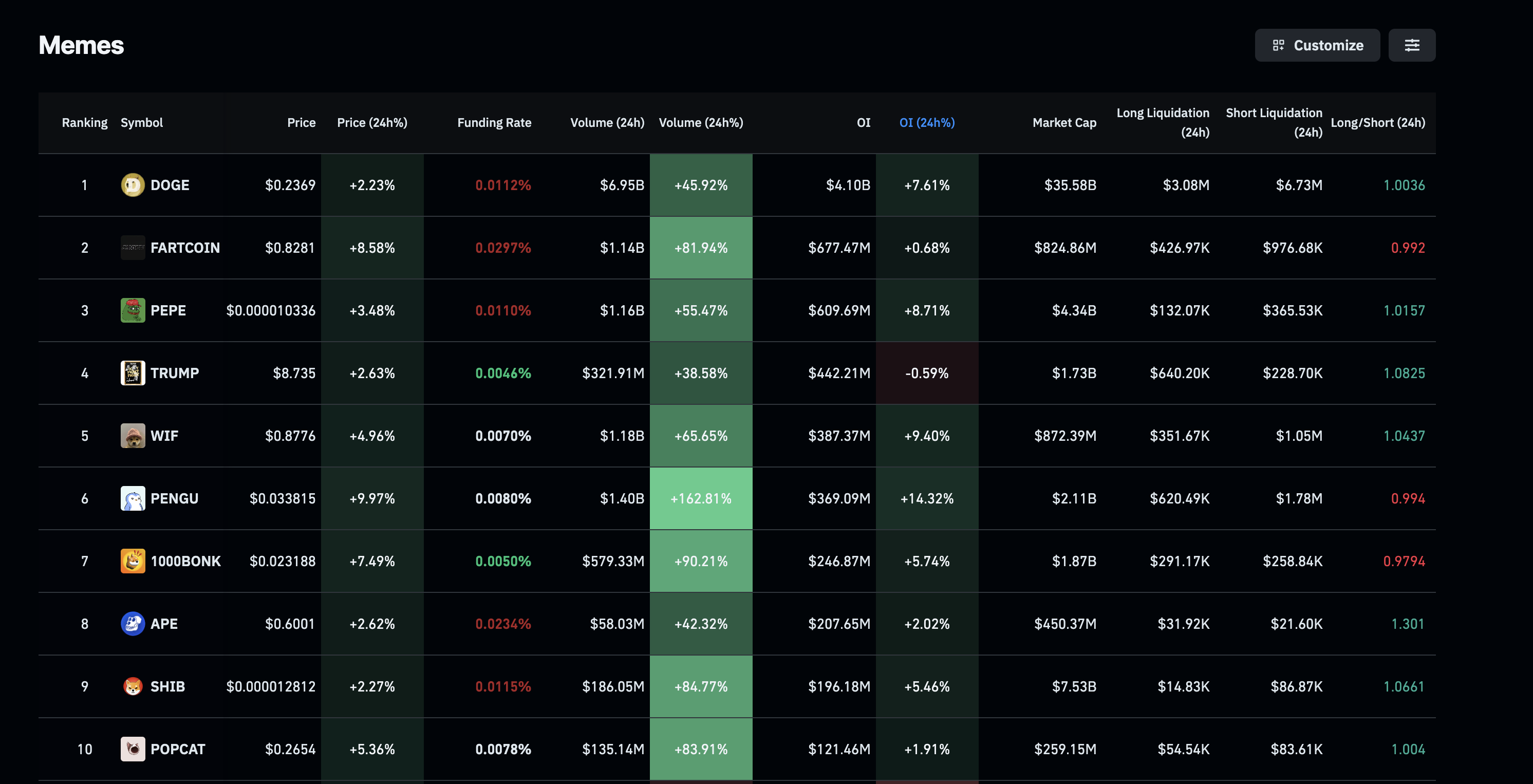 Sumando al sentimiento de riesgo, los datos de CoinGlass muestran que el Interés Abierto (OI) de FARTCOIN, PENGU y BONK ha aumentado en casi un 1%, 15% y 6%, respectivamente. Notablemente, a pesar de un aumento en los volúmenes de comercio, la relación largo/corto sigue estando por debajo de 1, lo que indica un desequilibrio bajista en los contratos de derivados activos.