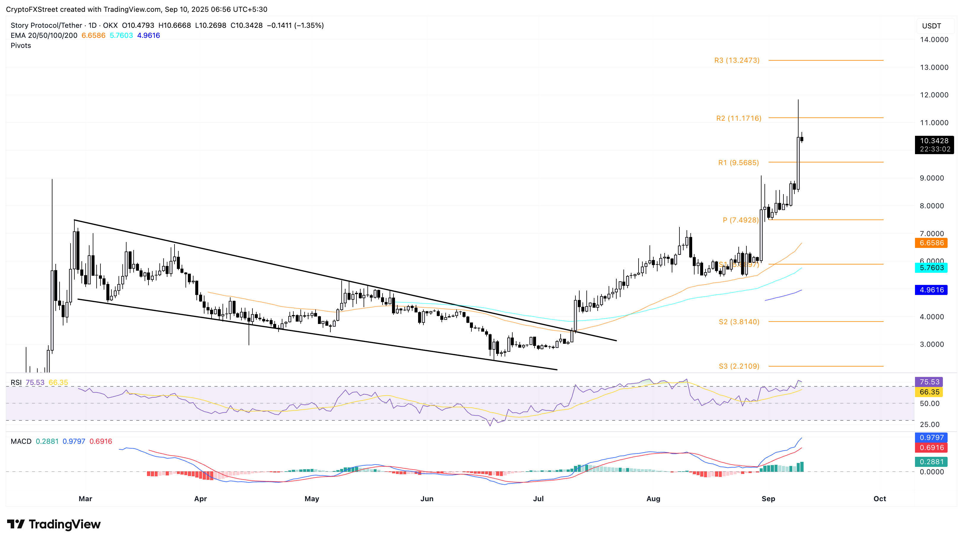 Story se desplaza a la baja un 1% al momento de la publicación el miércoles, tras el aumento del 22% el martes. El token IP ha mantenido una tendencia alcista general desde la ruptura del patrón de cuña descendente a mediados de julio.