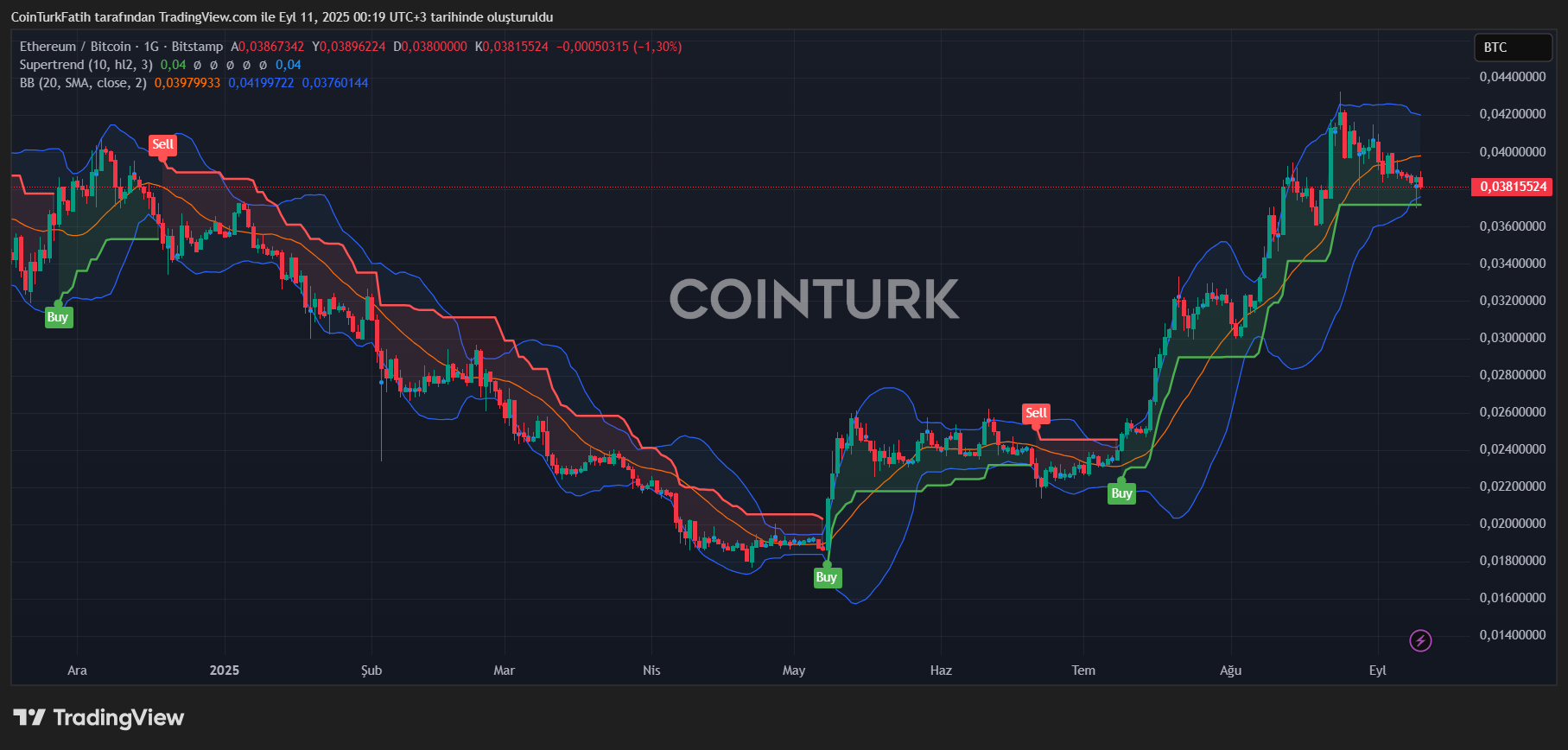 Otro gráfico crucial para los inversores en altcoins es el par ETHBTC. Aunque se probó el nivel de 0.038, la región ha mantenido su posición, deteniendo el descenso constante. ETH apunta a superar los $3,450, regresando a una fase de descubrimiento de precios por encima de $3,700 y apuntando al ciclo de $7-8,000. Los datos del ETF de ETH muestran recuperación. Si los datos del ETF de ETH del 10 de septiembre que llegarán en unas pocas horas muestran un ingreso neto de varios cientos de millones de dólares debido al IPP, la confianza de los inversores podría aumentar.