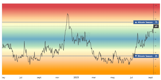 Si sobre señales se trata la cuestión, aquí hay una muy importante: el “altseason index” llegó a su punto más alto en lo que va de 2025.