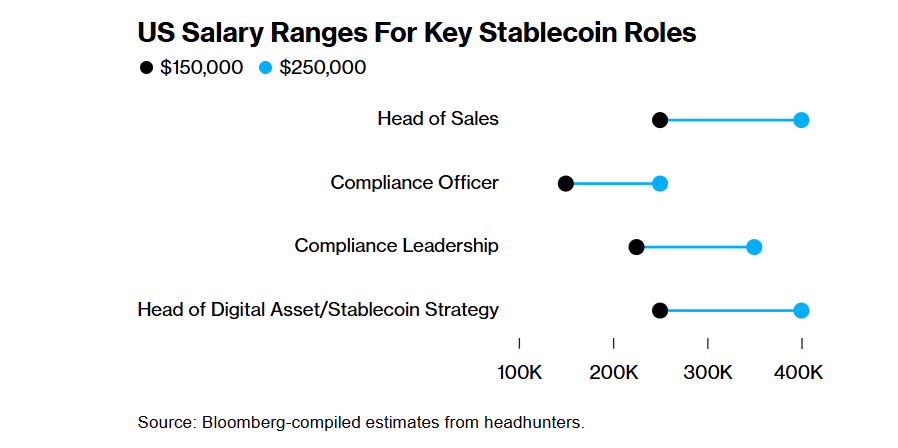 Para tener una idea del estado de la demanda de talentos, el puesto de un jefe de estrategia de monedas estables en una firma financiera tradicional ofrece un pago de entre $250.000 y $400.000 anuales.