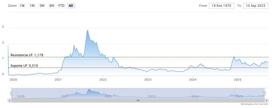 La resistencia a mediano plazo se encuentra en los 1.01 dólares. Mientras, los indicadores de Ei se muestran mixtos.