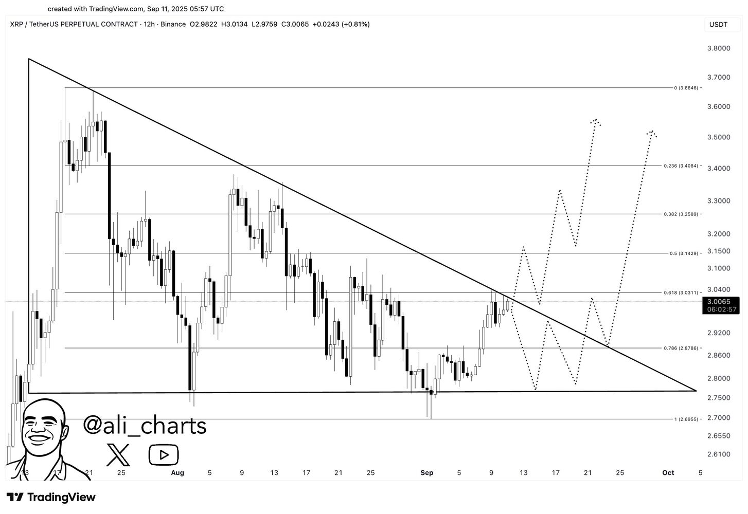 Según se informa, las billeteras de las ballenas vendieron más de 120 millones de dólares en XRP en un período de 24 horas. Si bien este tipo de actividad puede generar temor entre los pequeños tenedores, el precio se ha mantenido estable. XRP se mantuvo en el nivel de 3 dólares y subió hacia 3.10 dólares poco después.