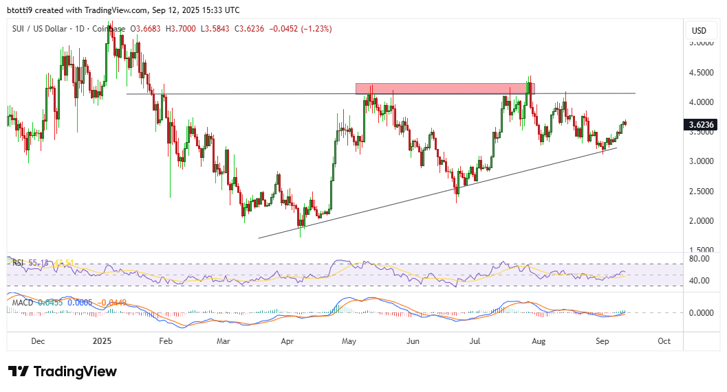 - El precio de Sui está por encima de los 3.60 dólares, ya que los alcistas apuntan al nivel clave.