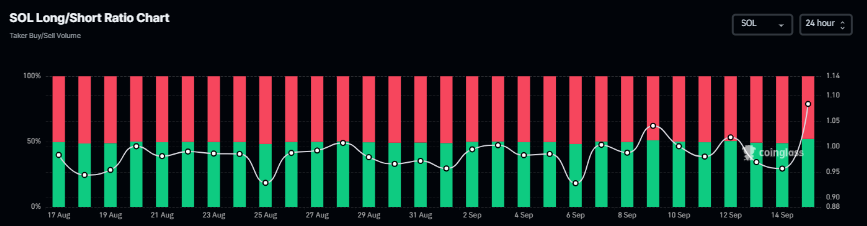 Gráfico del ratio largo-corto de Solana. Fuente: Coinglass