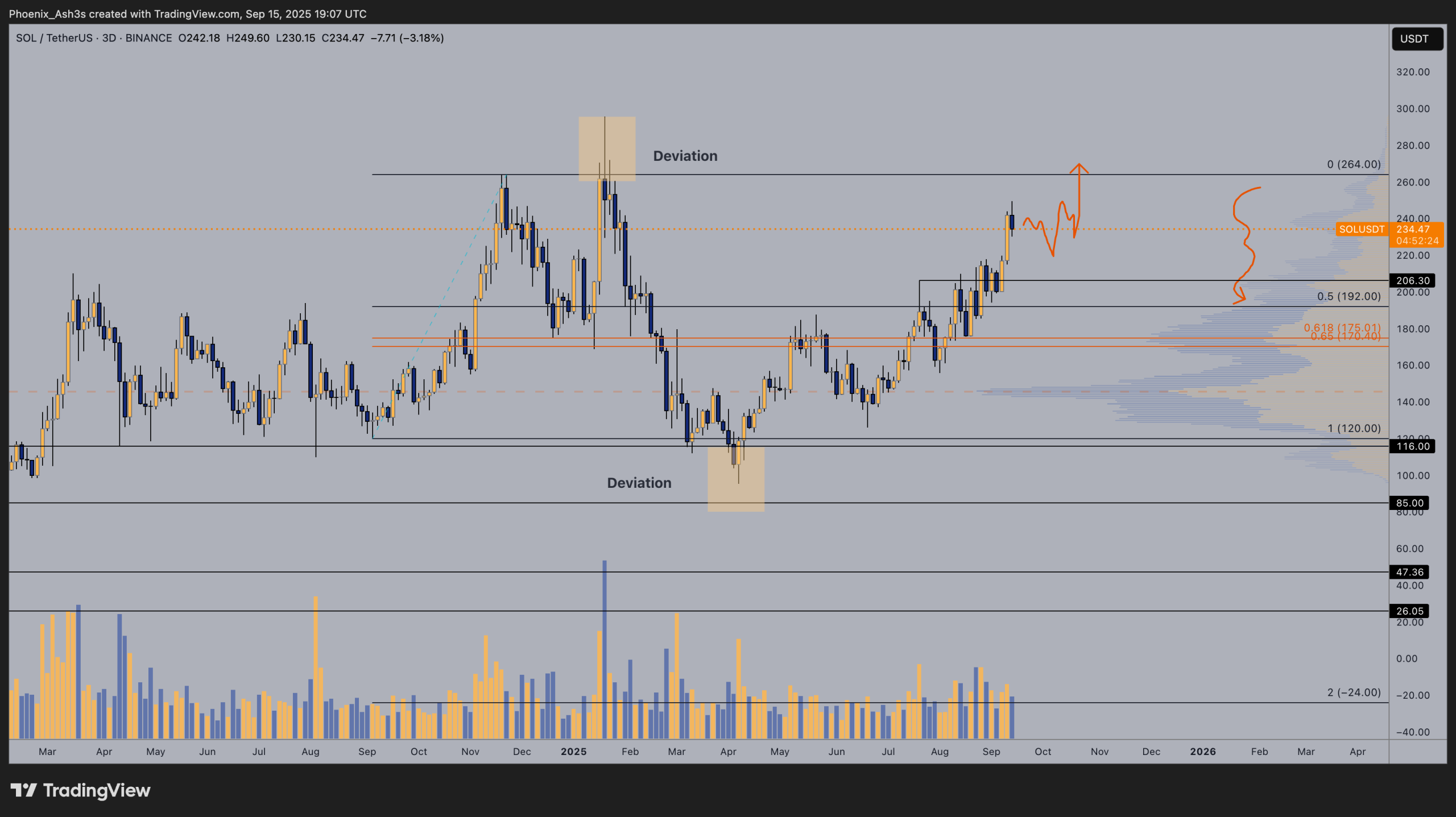 Phoenix comparte su escenario para Solana (SOL), esperando un movimiento más allá de $246 debido a prometedoras noticias de reservas y un sentimiento positivo del mercado, lo que sugiere optimismo a corto plazo. Mientras tanto, el analista Poppe mantiene su indecisión pero sigue optimista para Ethereum (ETH) y altcoins, sugiriendo una fase alcista inminente. Sin embargo, expresa preocupación por la posibilidad de una corrección severa, dejando la puerta abierta para cualquiera de los dos escenarios.