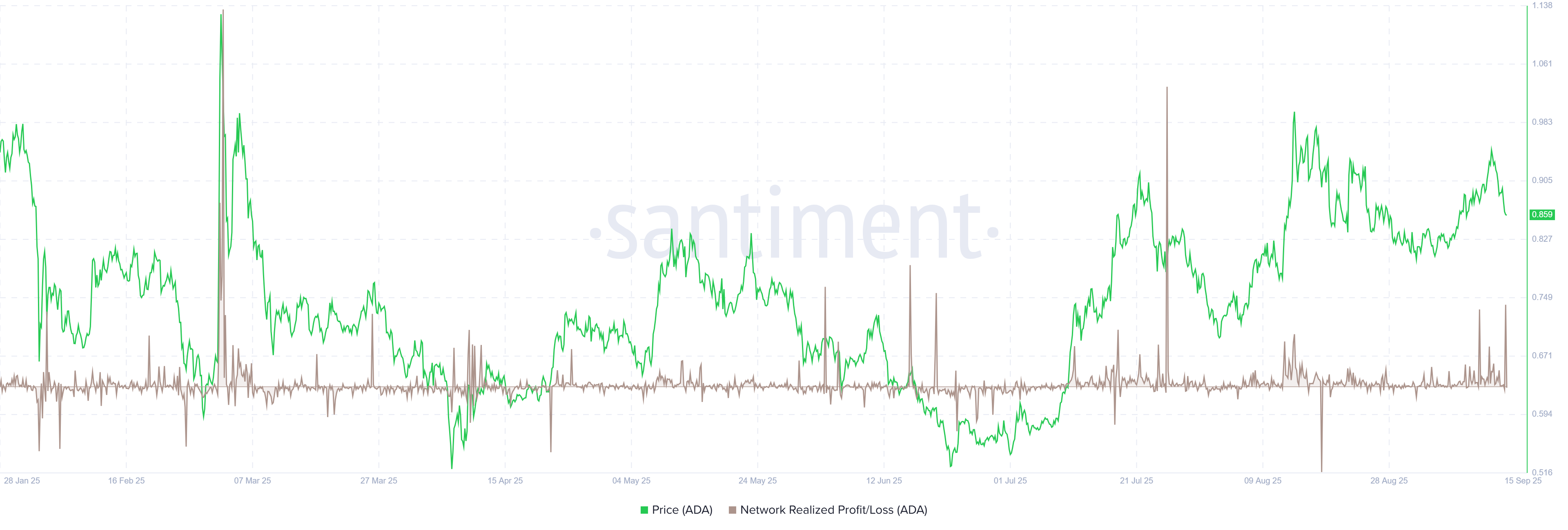 La métrica de Beneficio/Pérdida Realizado de la Red (NPL) de Santiment indica que los tenedores de Cardano están registrando algunos beneficios.