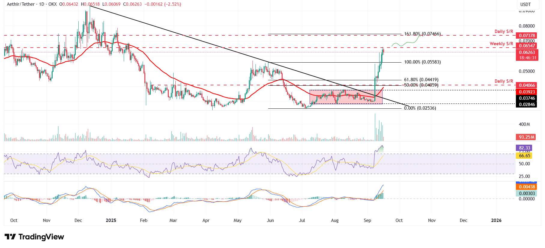 Si ATH cierra por encima de la resistencia semanal en 0.065$ de manera diaria, podría extender el repunte hacia su próxima resistencia diaria en 0.073$.