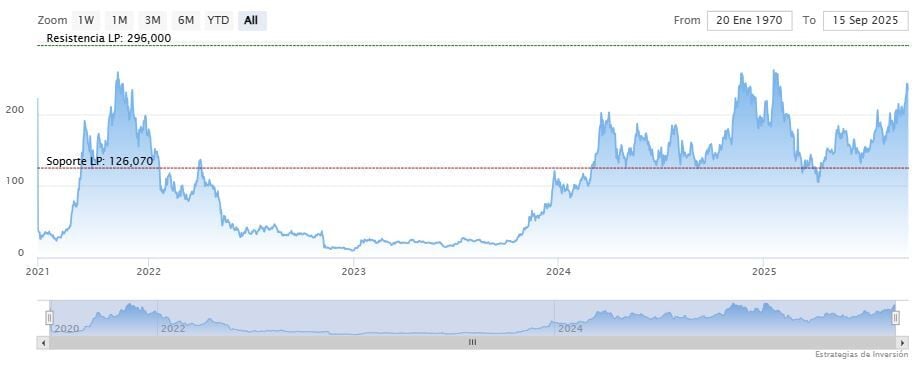 La resistencia a mediano plazo se encuentra en los 249.58 dólares. Mientras, los indicadores de Ei se muestran mixtos.